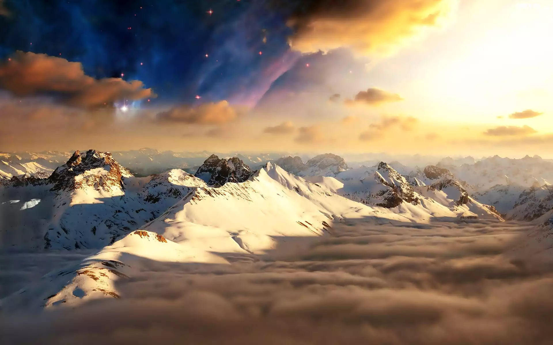 Zdjęcia, Zima, Wierzchołki, Gór, Chmury