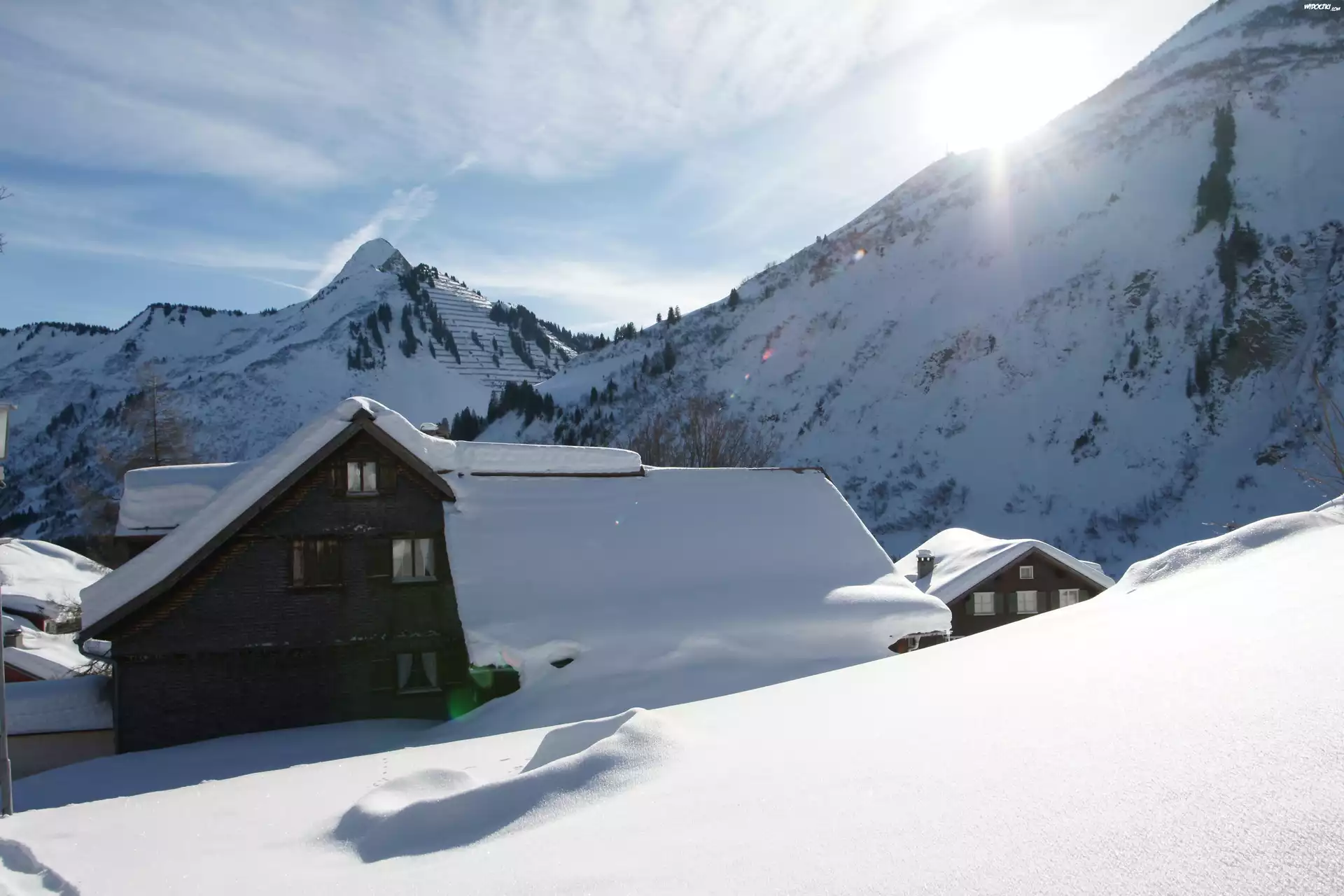 Zdjęcia, Zima, Domki, W, Górach, Śnieg