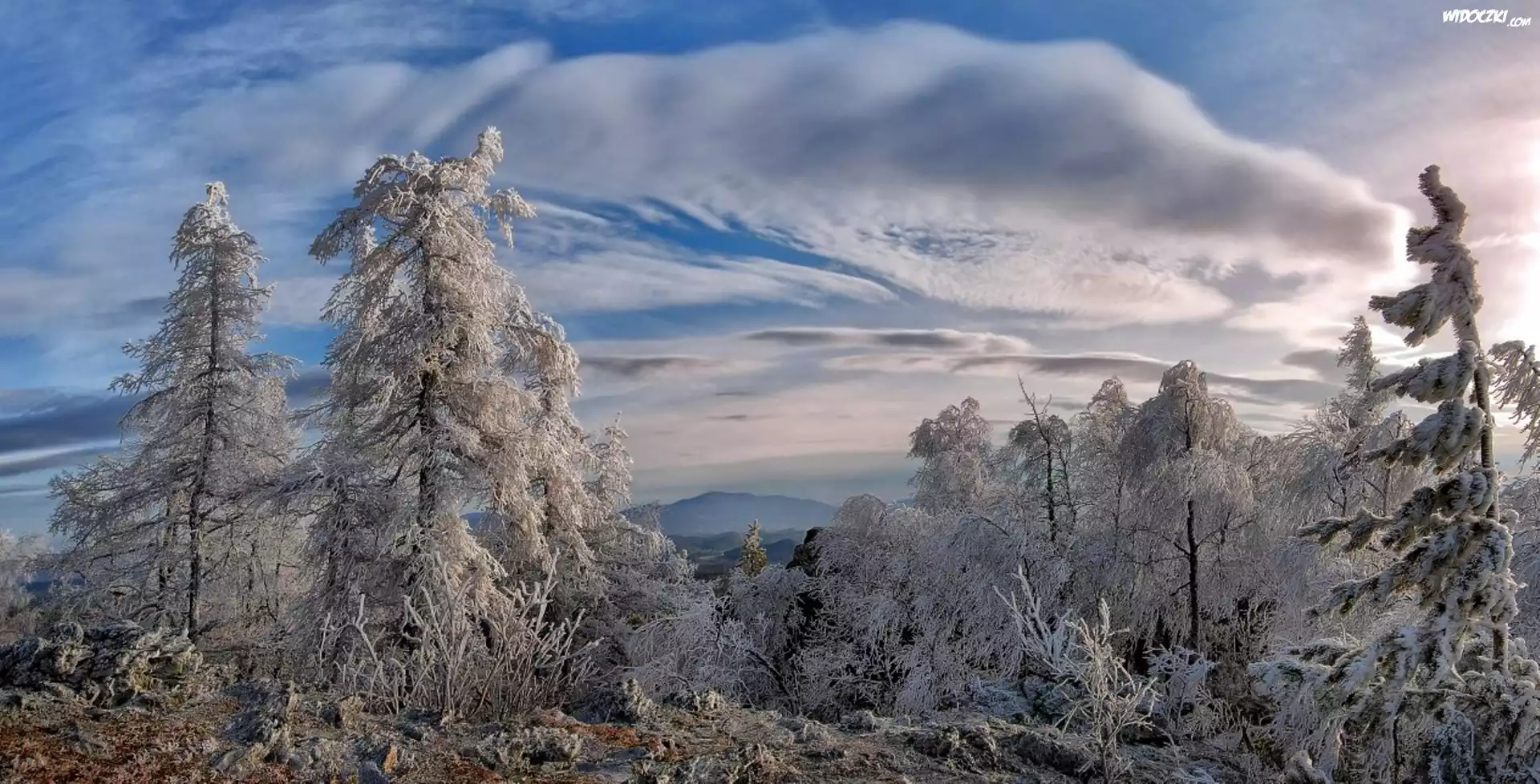 Zdjęcia, Zima, Drzewa, Góry, Chmury