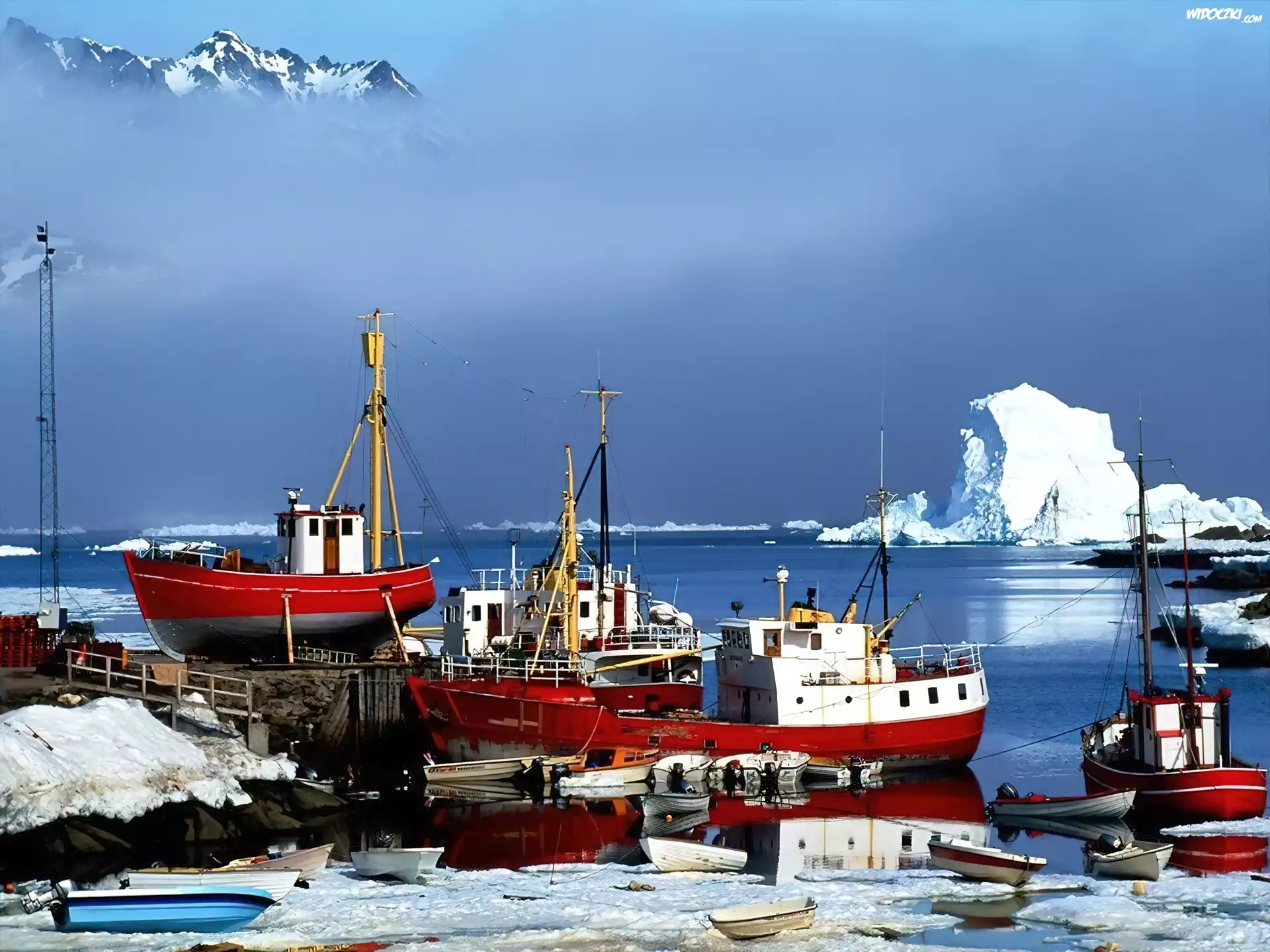 Zdjęcia, Zima, Zatoka, Kutry, Góry, Lodowe