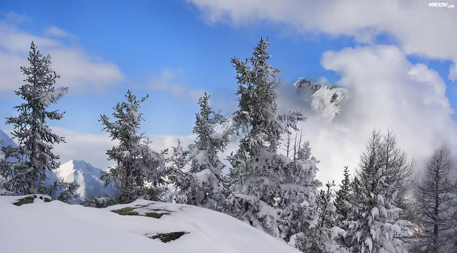 Zdjęcia, Zima, Śnieg, Góry, Świerki