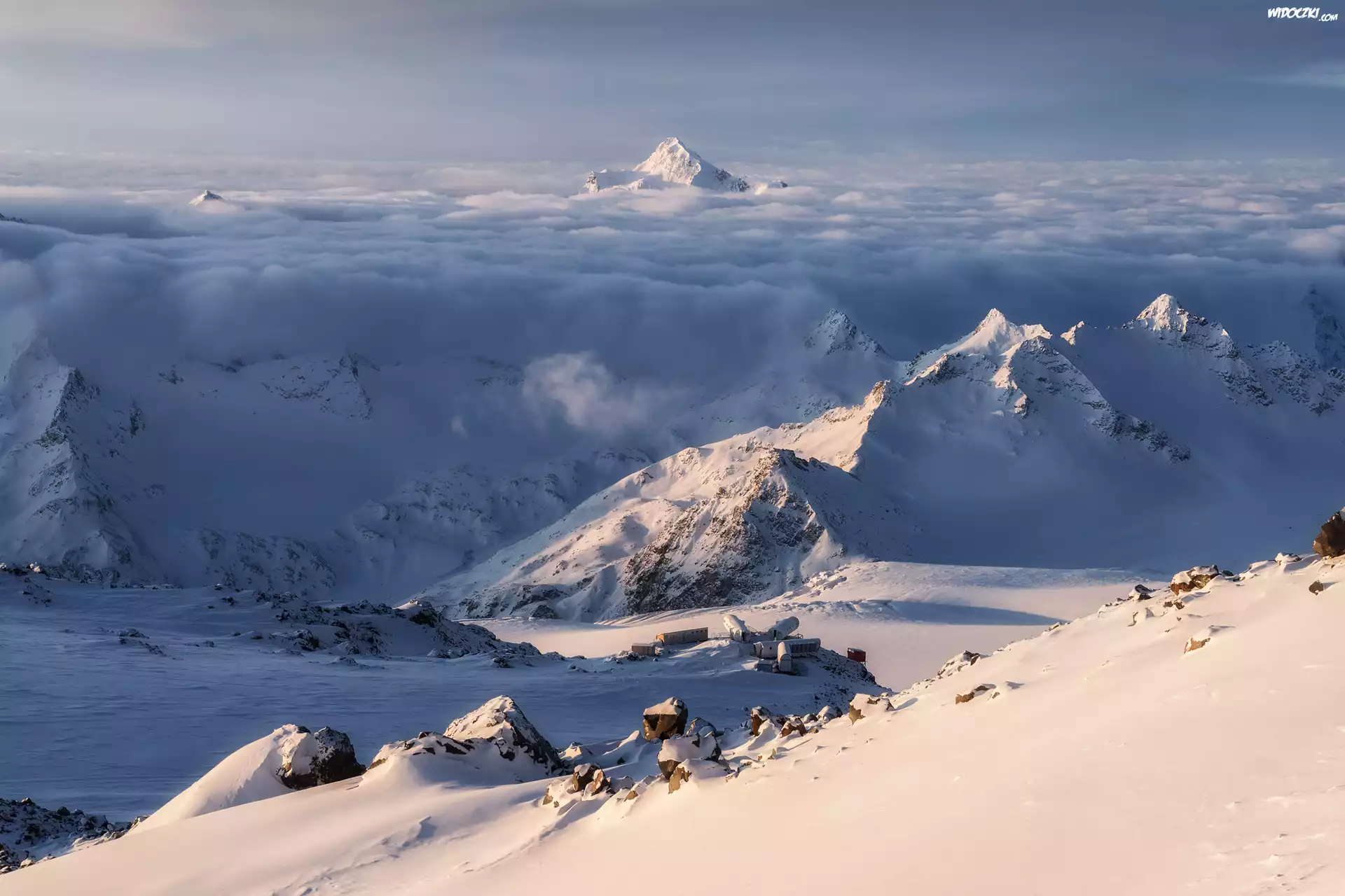 Zdjęcia, Zima, Szczyty, Góry, Chmury
