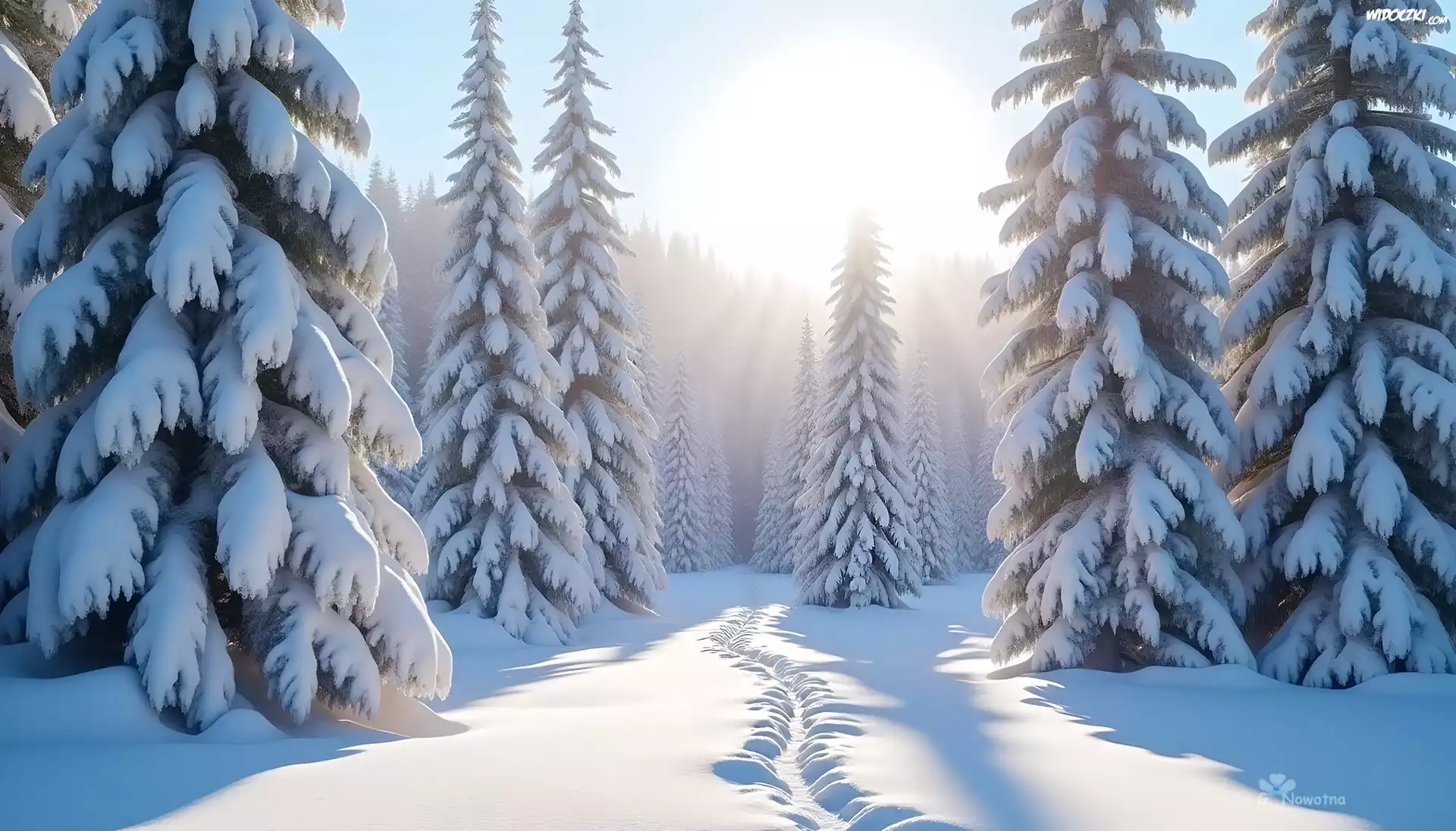 Zdjęcia, Ośnieżone, Drzewa, Choinki, Zima, Śnieg, Grafika