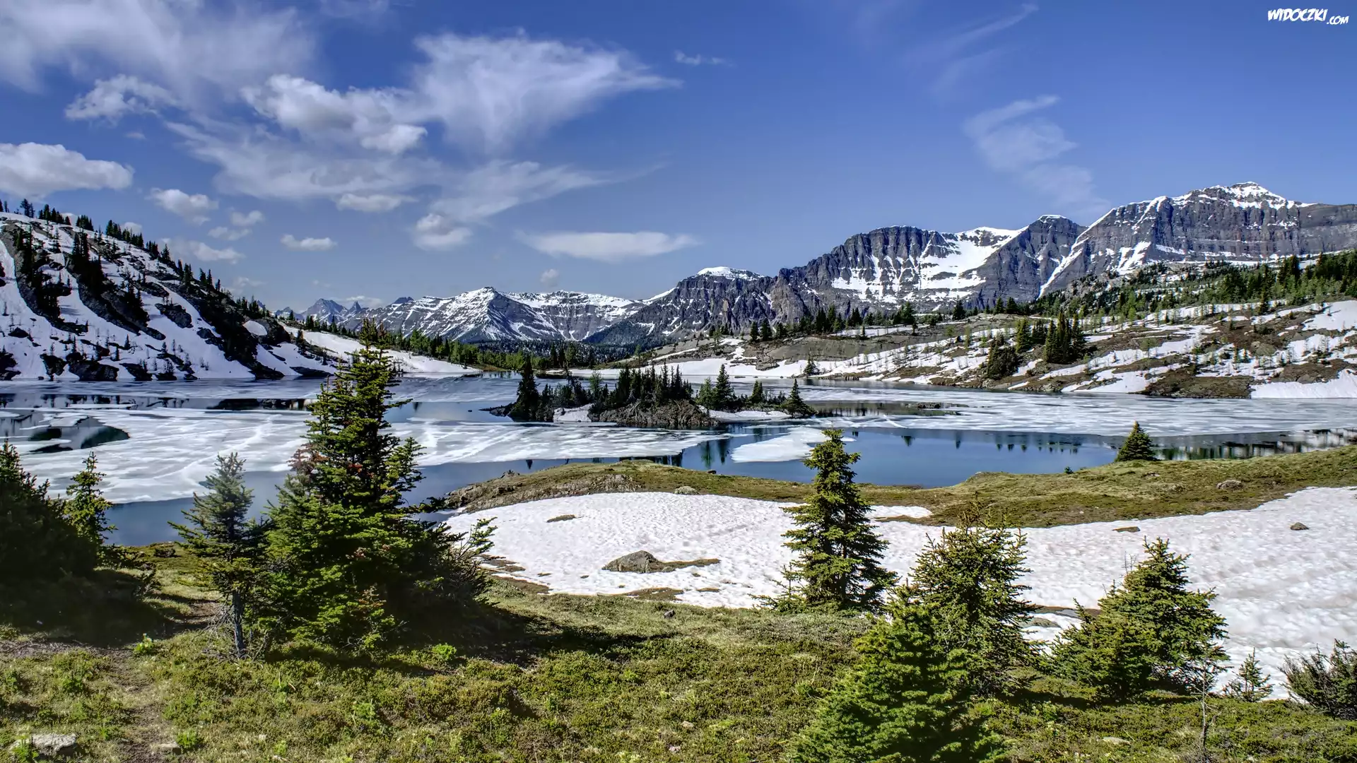 Zima, Góry, Jezioro, Drzewa