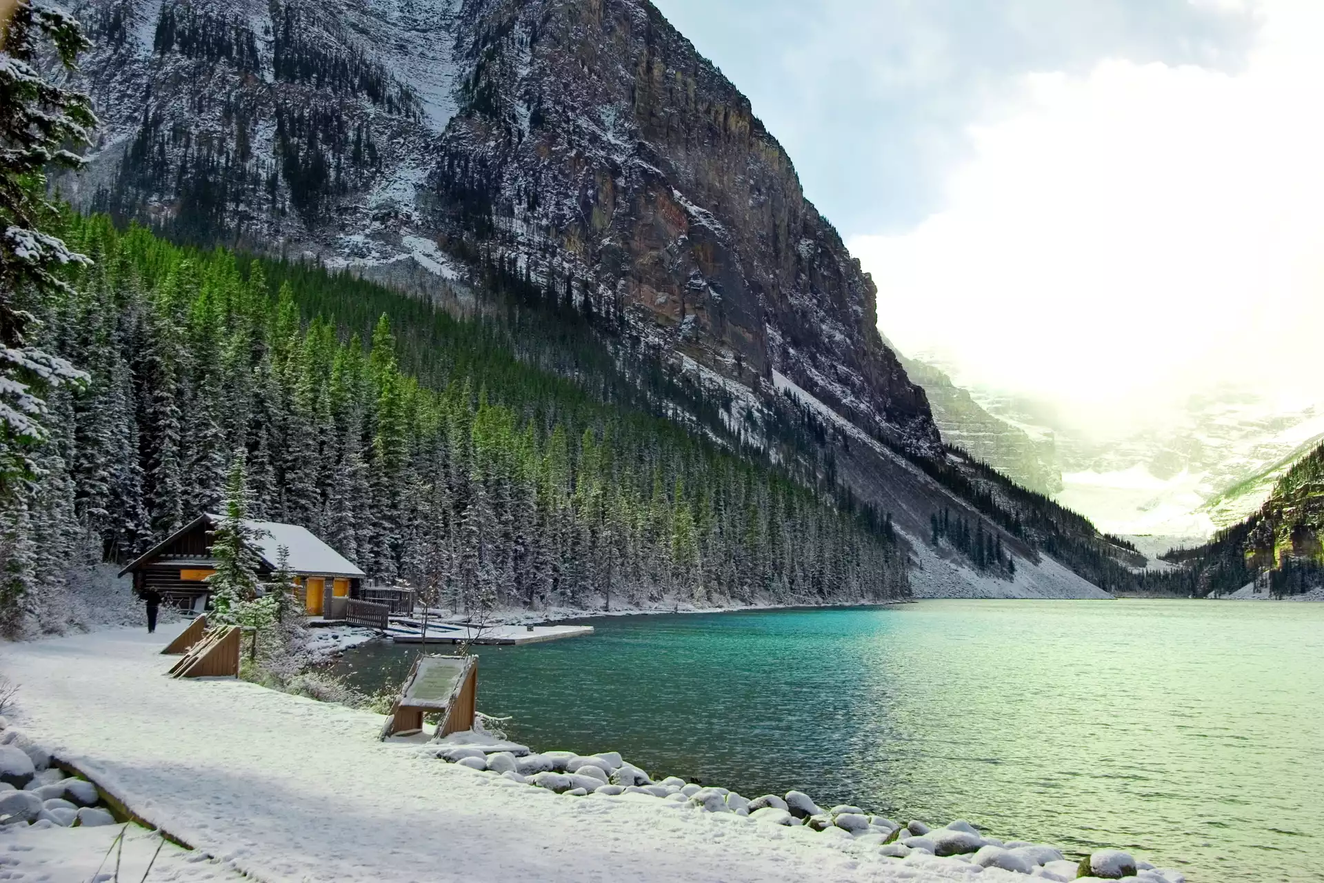 Zdjęcia, Zima, Śnieg, Góry, Jezioro, Dom