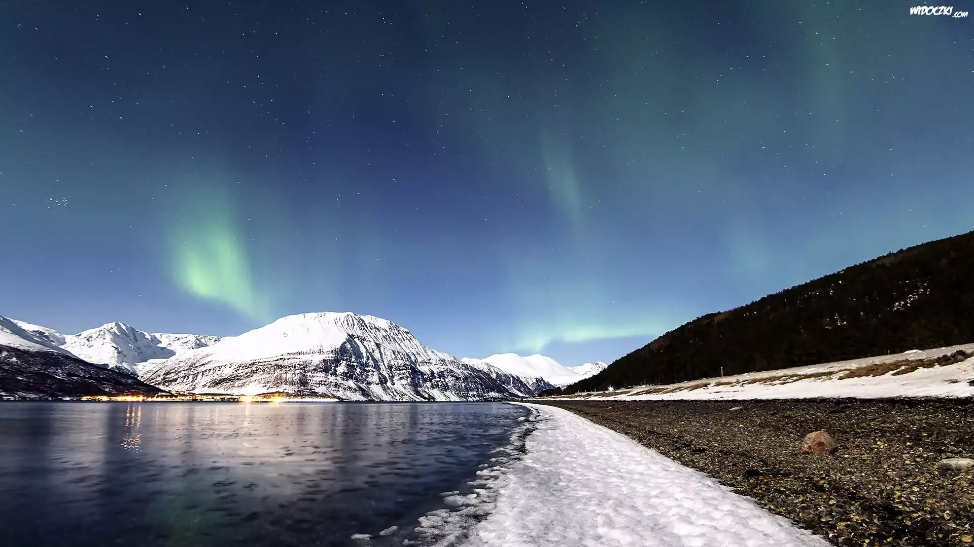 Zdjęcia, Zima, Góry, Jezioro, Zorza