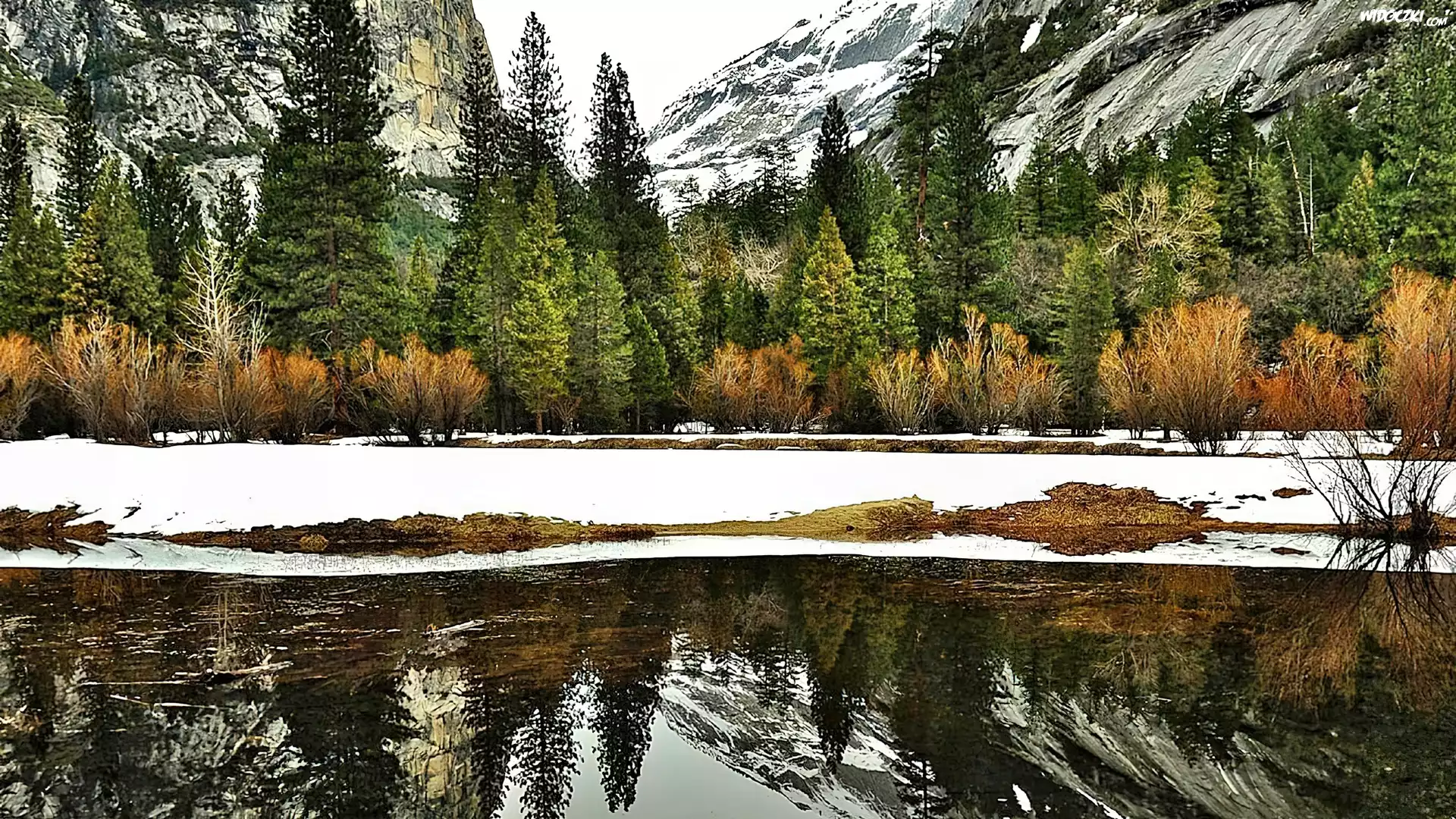 Zdjęcia, Zima, Góry, Las, Jezioro, Odbicie