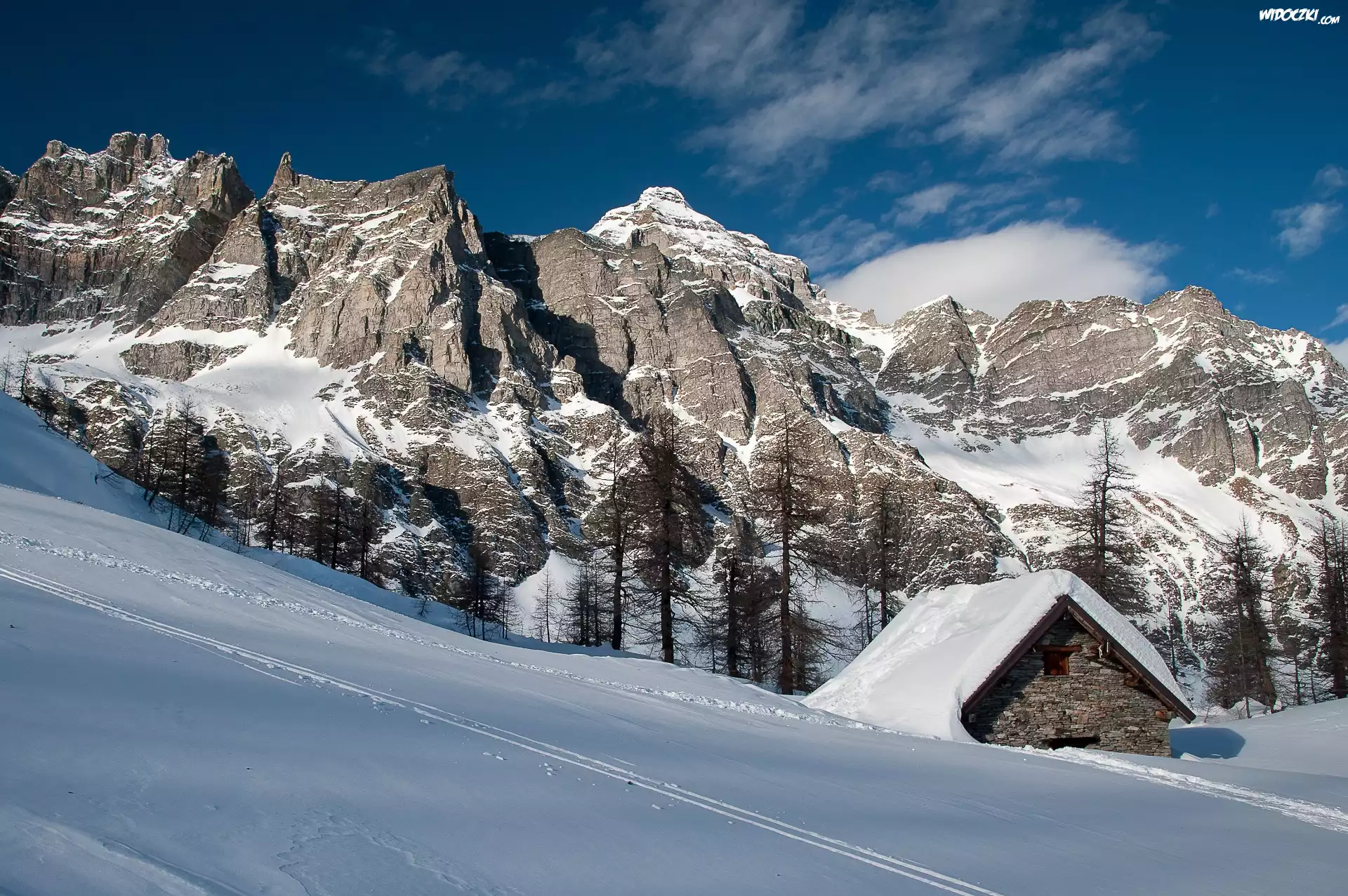 Zdjęcia, Zima, Góry, Kamienny, Domek