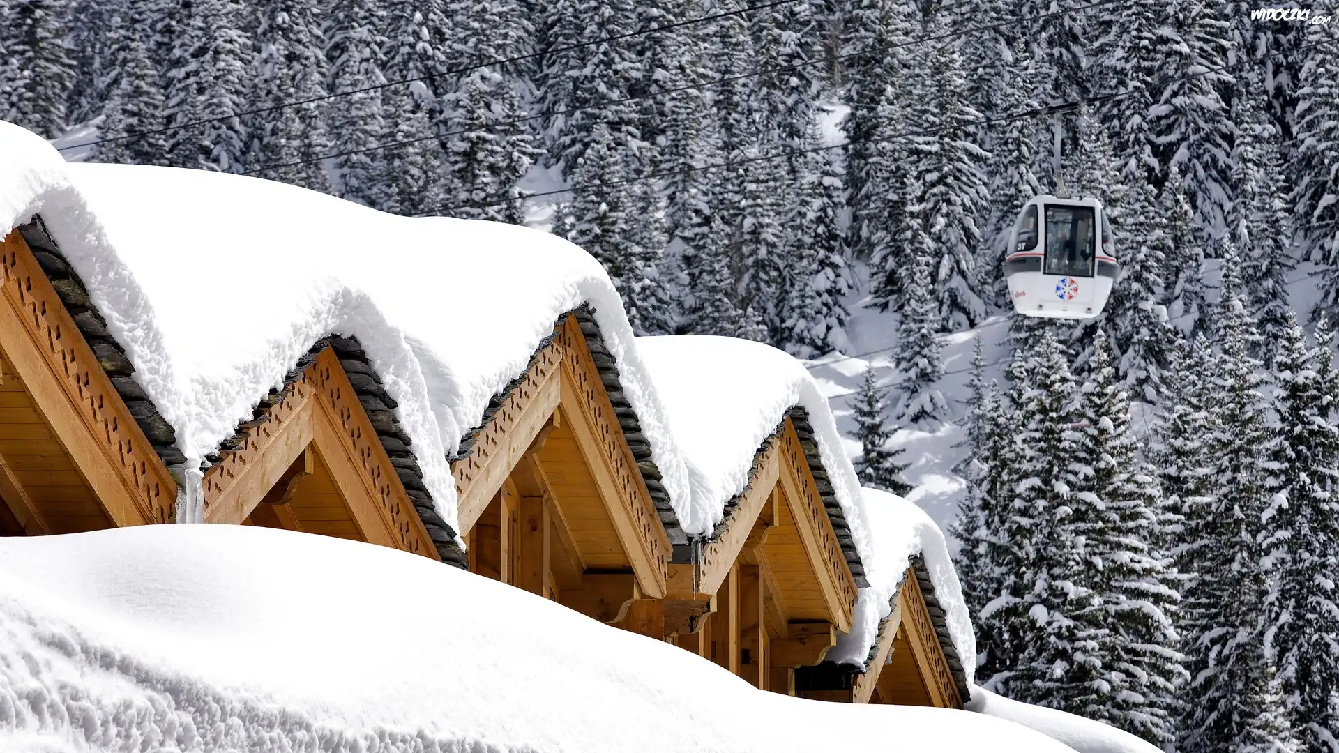 Zima, Zaśnieżone, Dachy, Kolejka, Linowa
