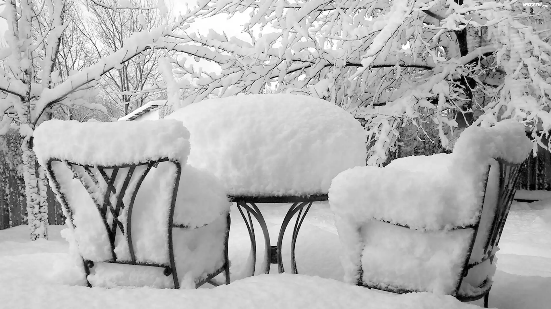 Zdjęcia, Zima, Stolik, Krzesła, Śnieg