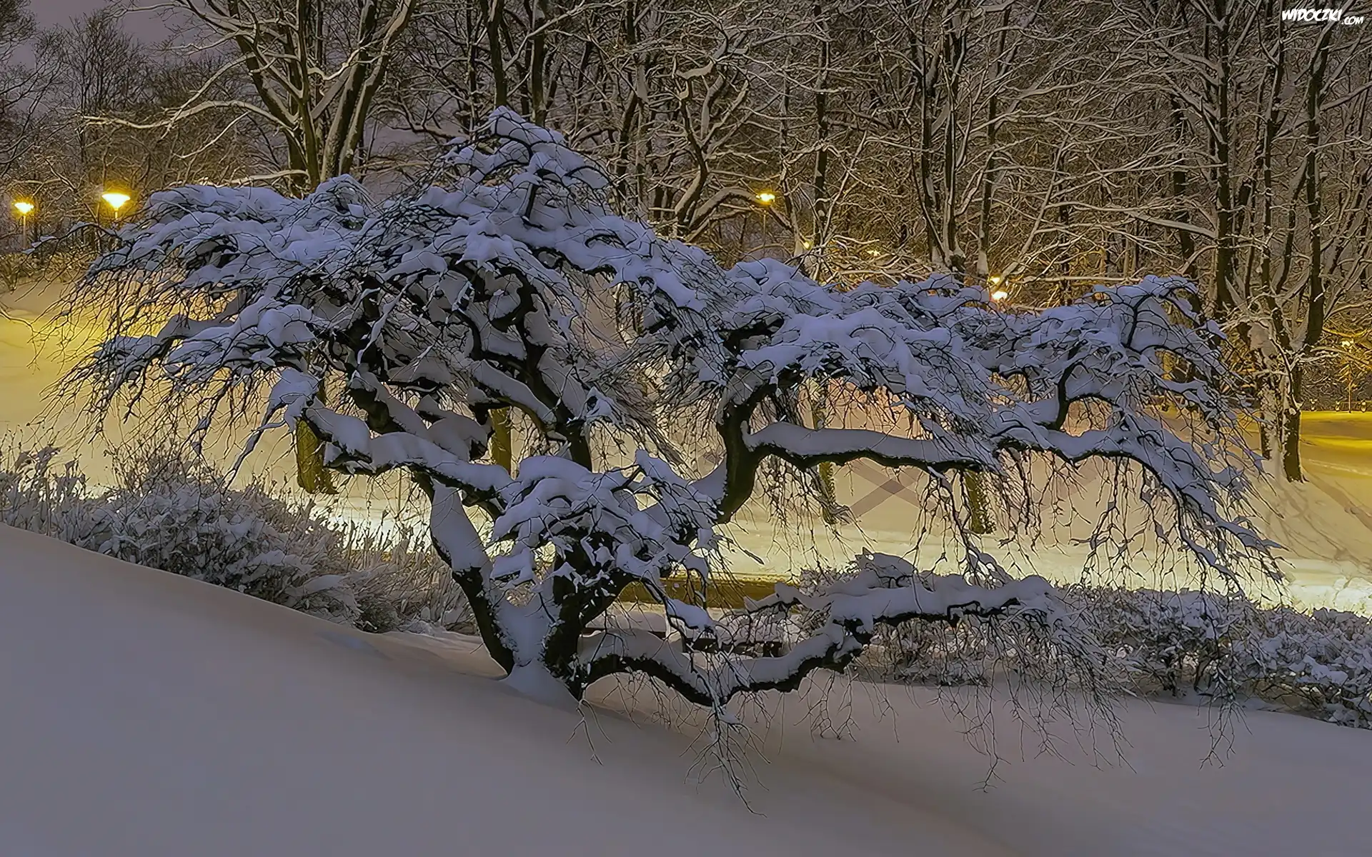 Zdjęcia, Zima, Śnieg, Niskie, Krzywe, Drzewo