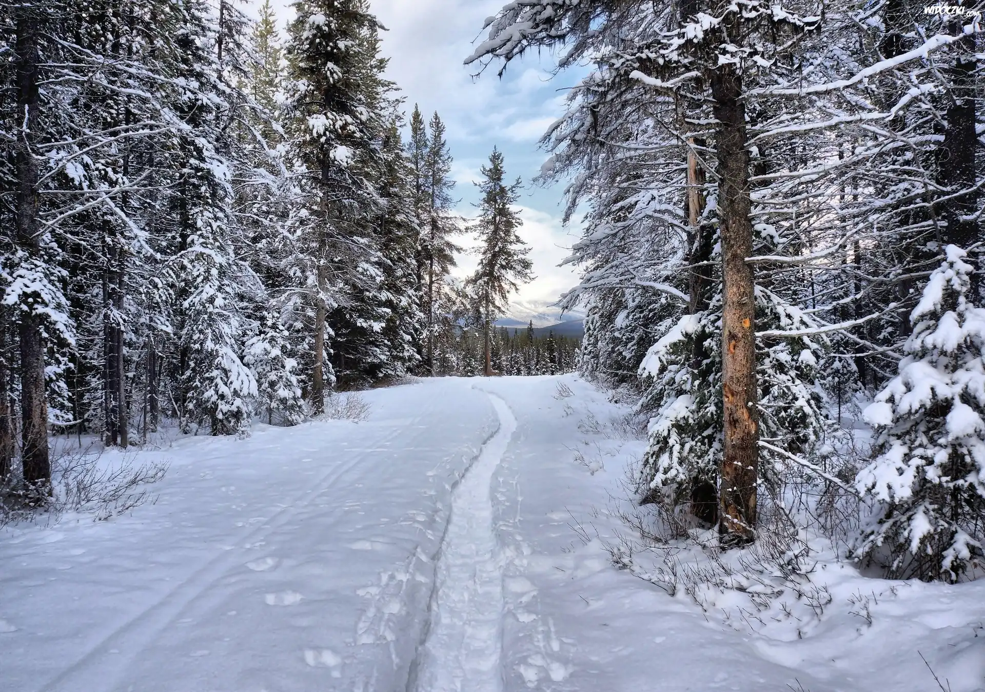 Zdjęcia, Zima, Drzewa, Las, Droga