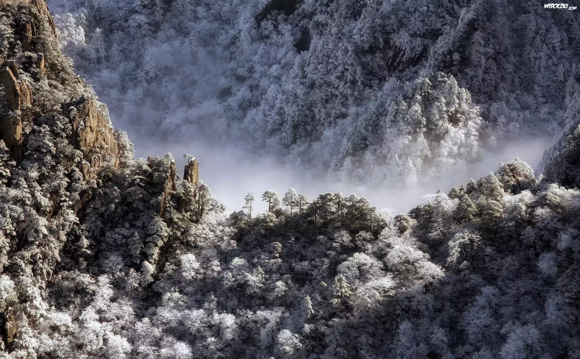 Zdjęcia, Zima, Góry, Drzewa, Las, Mgła