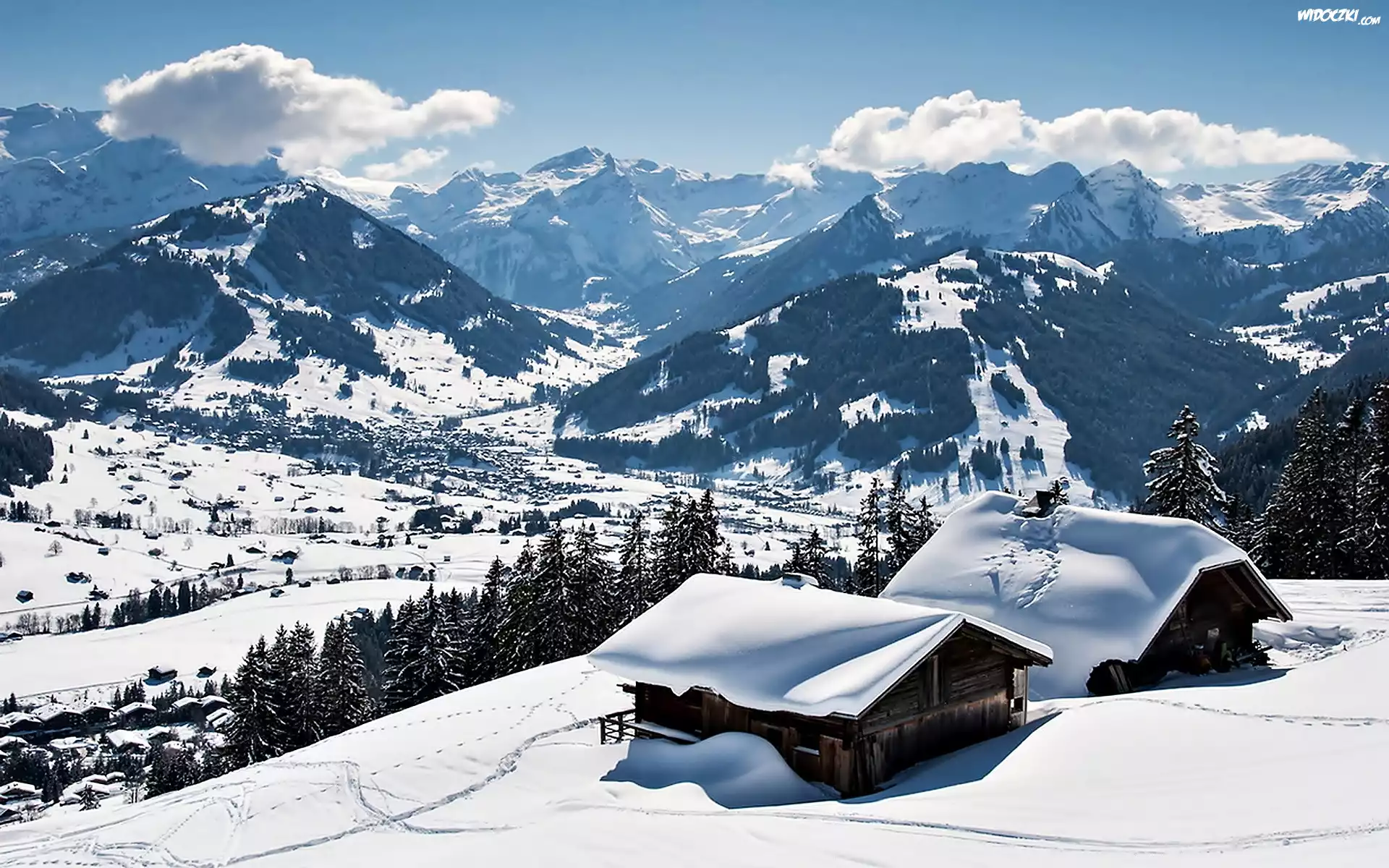 Zdjęcia, Zima, Śnieg, Góry, Domki, Las, Drzewa