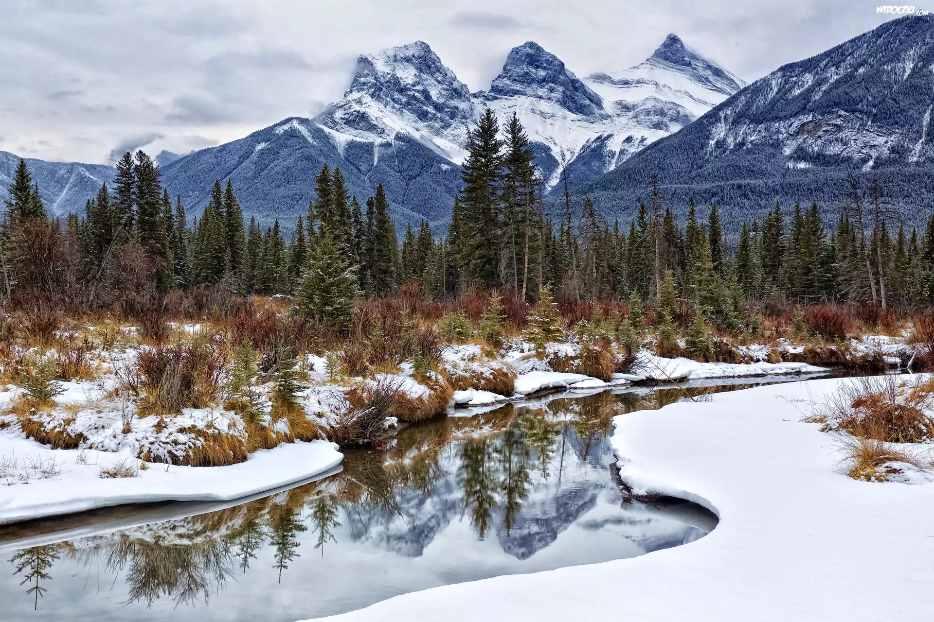 Zima, Góry, Las, Rzeka