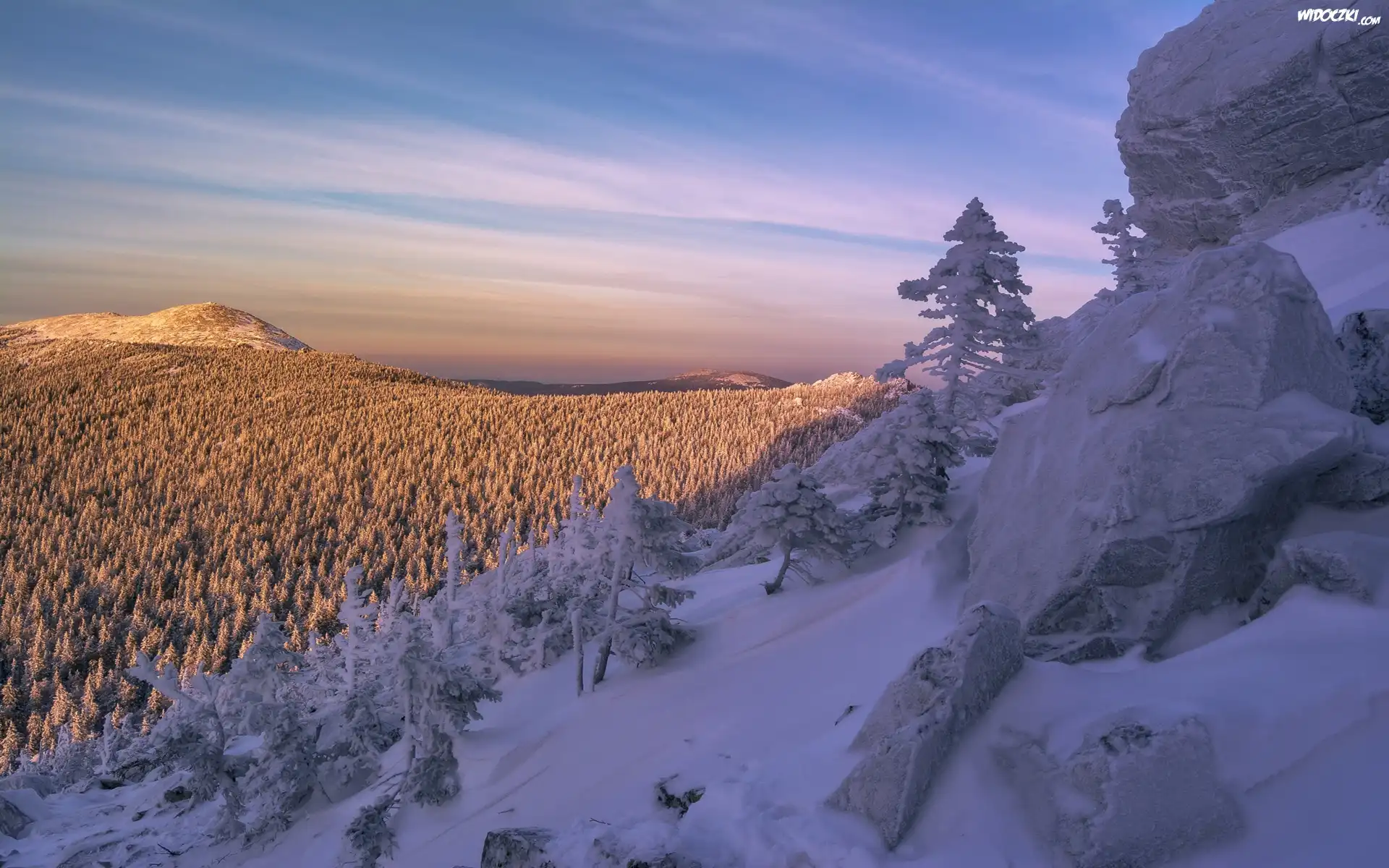 Zdjęcia, Zima, Góry, Las, Skały