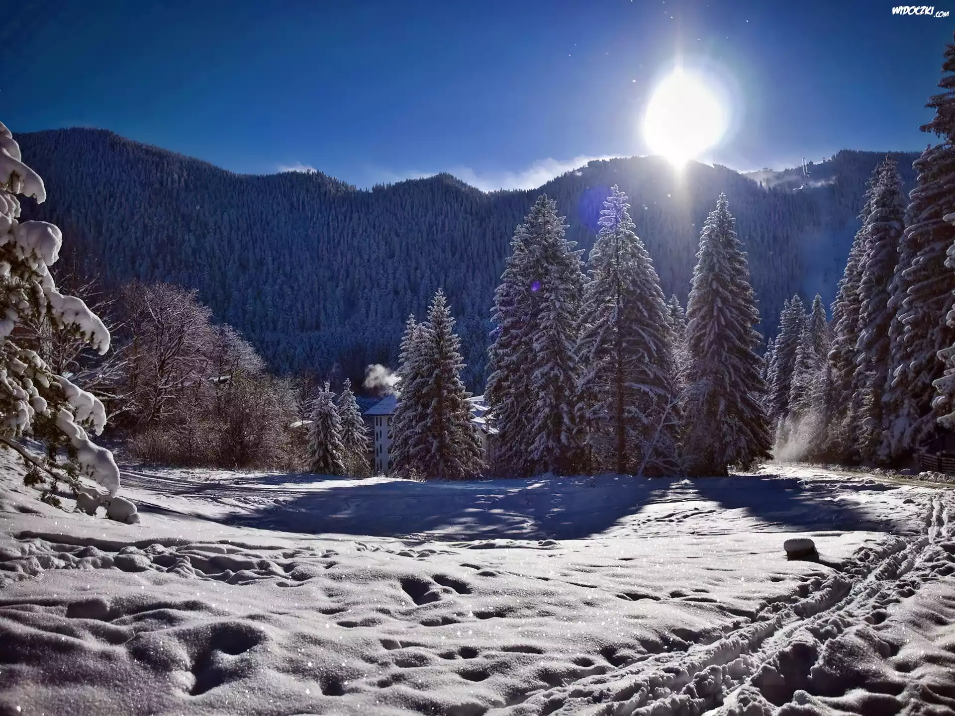 Drzewo, Las, Góra, Morze, Zachód Śłońca Las, Drzewa, Przebijające, Słońce Jesień, Las, Płotek Góra, Zachody Śłońca Iglak, Igły, Śnieg Góra, Jeziora Las, Odbicie, Drzew, Strumyk Las, Przenikające swiatło Góry, Stok, Snowbording Góra Rzeka, Las Zima, Śnieg, Drzewa Góra Rzeka, Las, Jesień