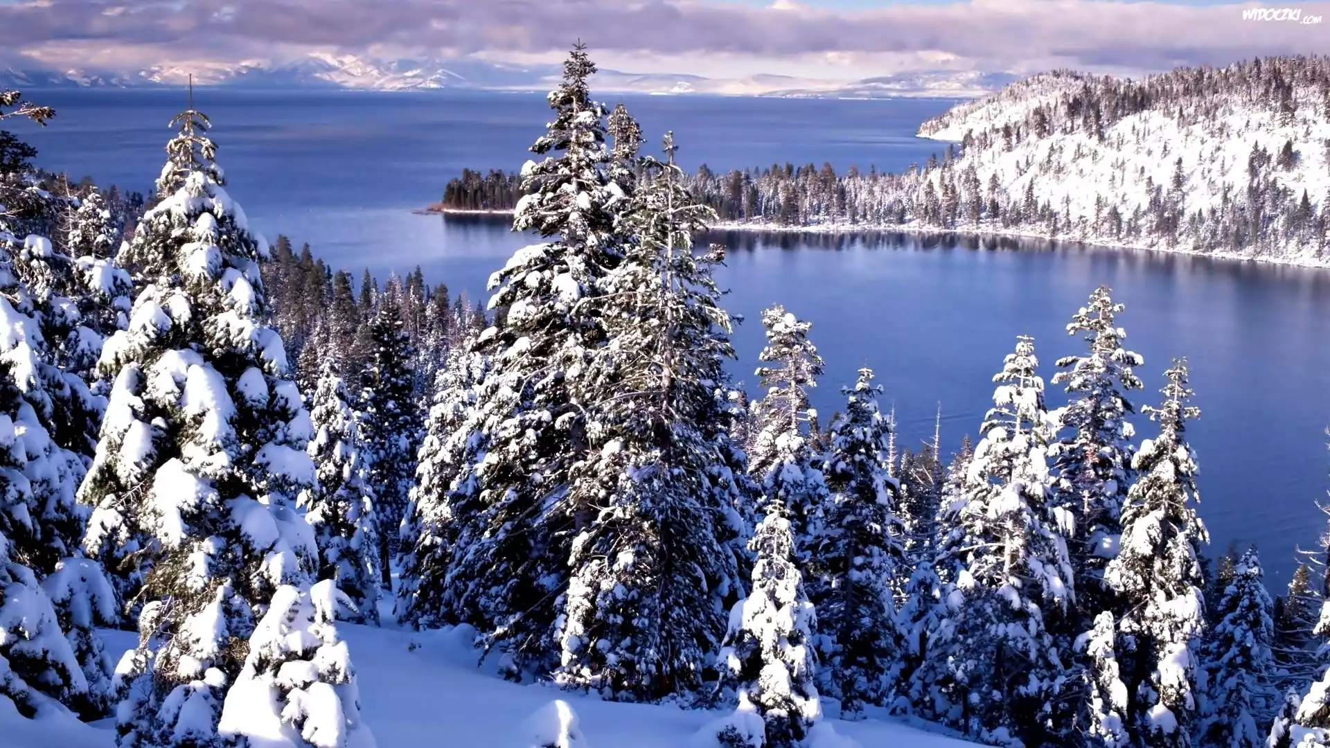 Zdjęcia, Zima, Śnieg, Las, Jezioro