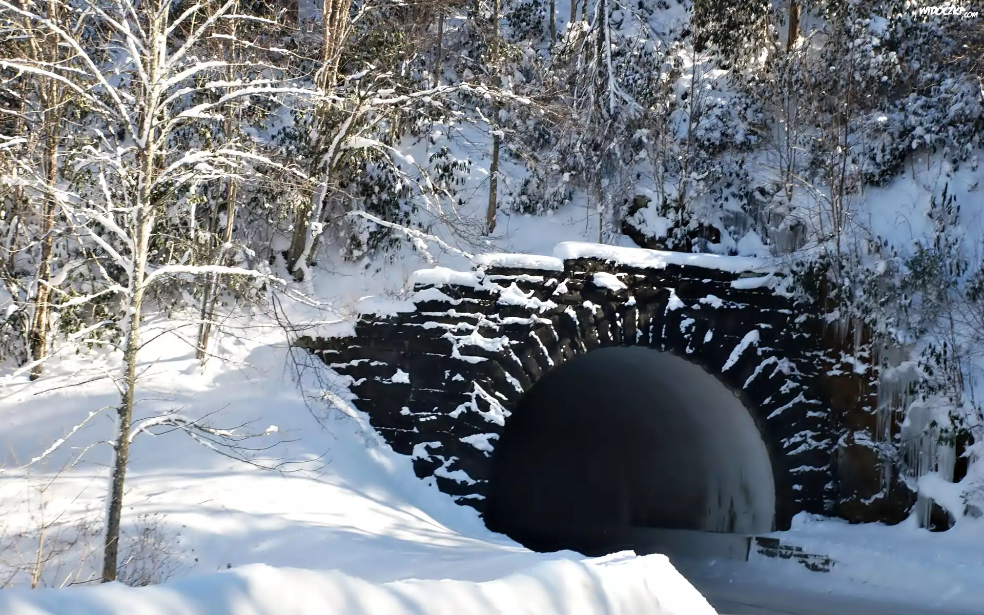 Zdjęcia, Zima, Śnieg, Tunel. Las, Drzewa