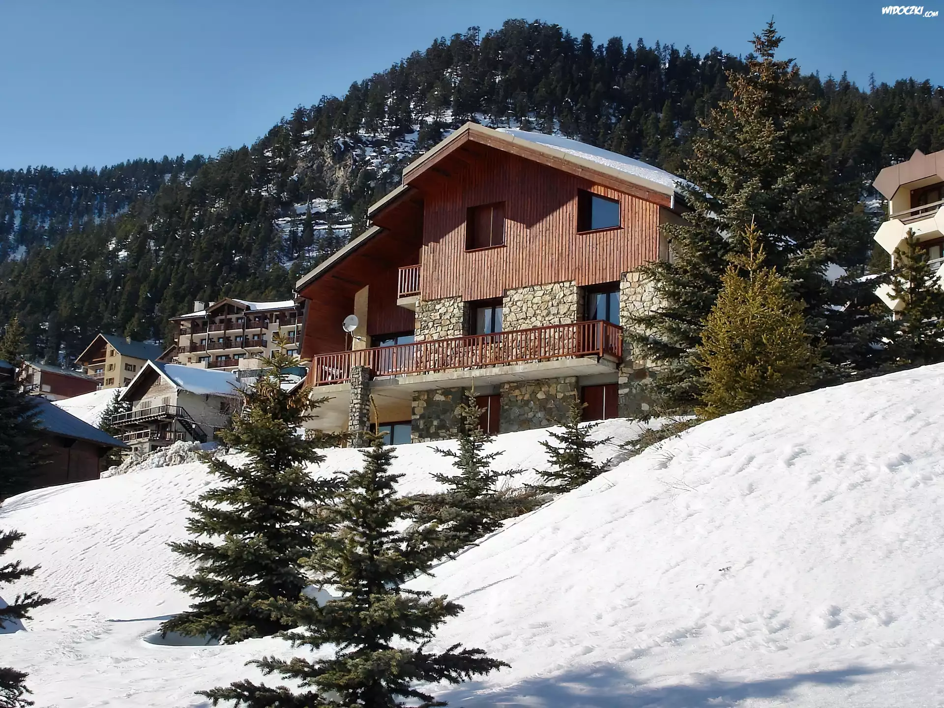 Zdjęcia, Zima, Góry, Lasy, Domy