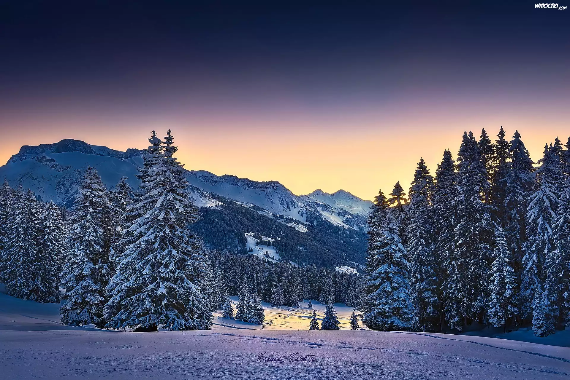 Zdjęcia, Zima, Góry, Lasy, Zmierzch