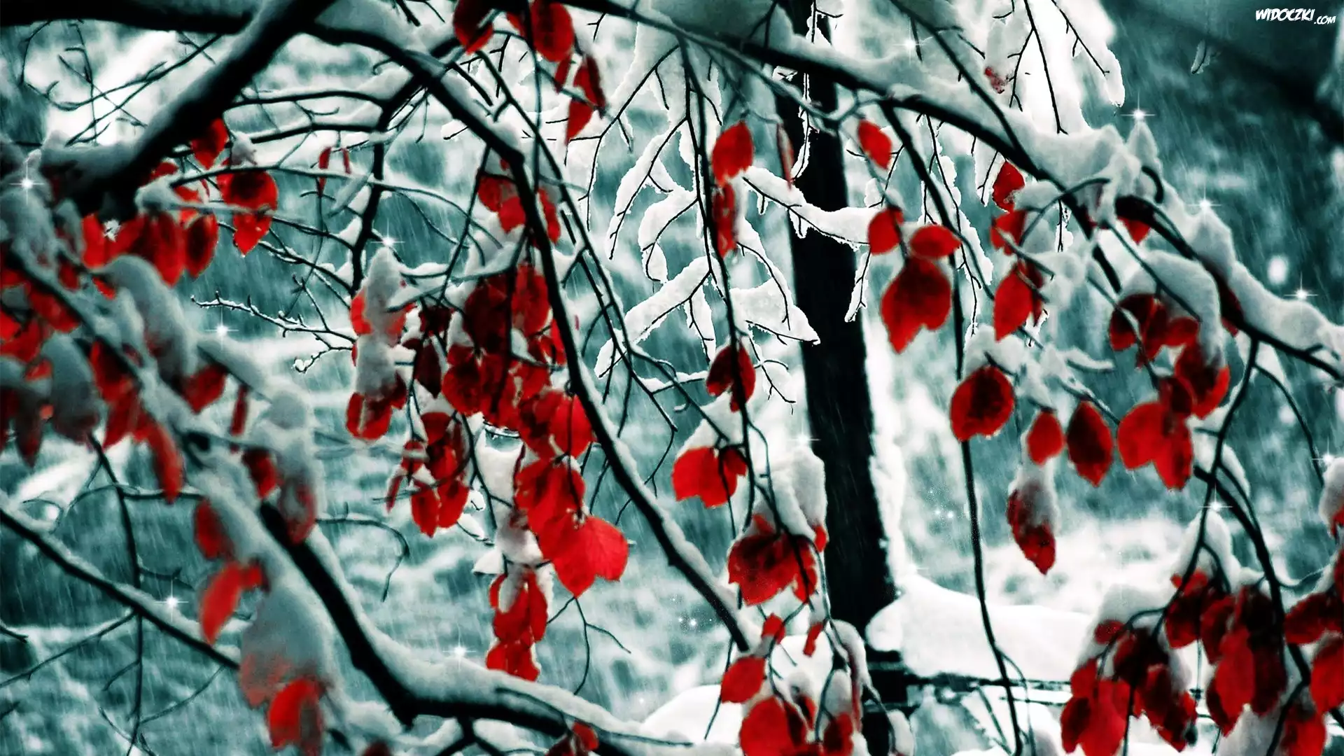 Zdjęcia, Zima, Śnieg, Drzewa, Liście, Gałązki