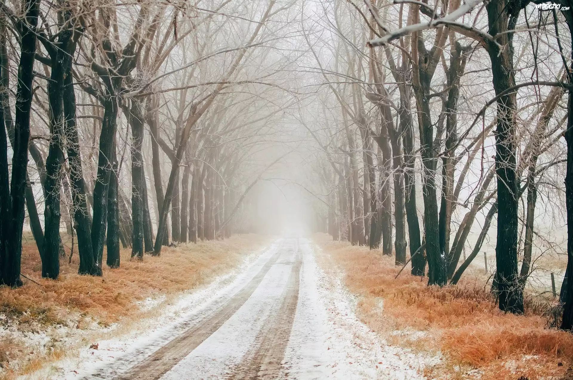 Zima, Droga, Mgła, Drzewa