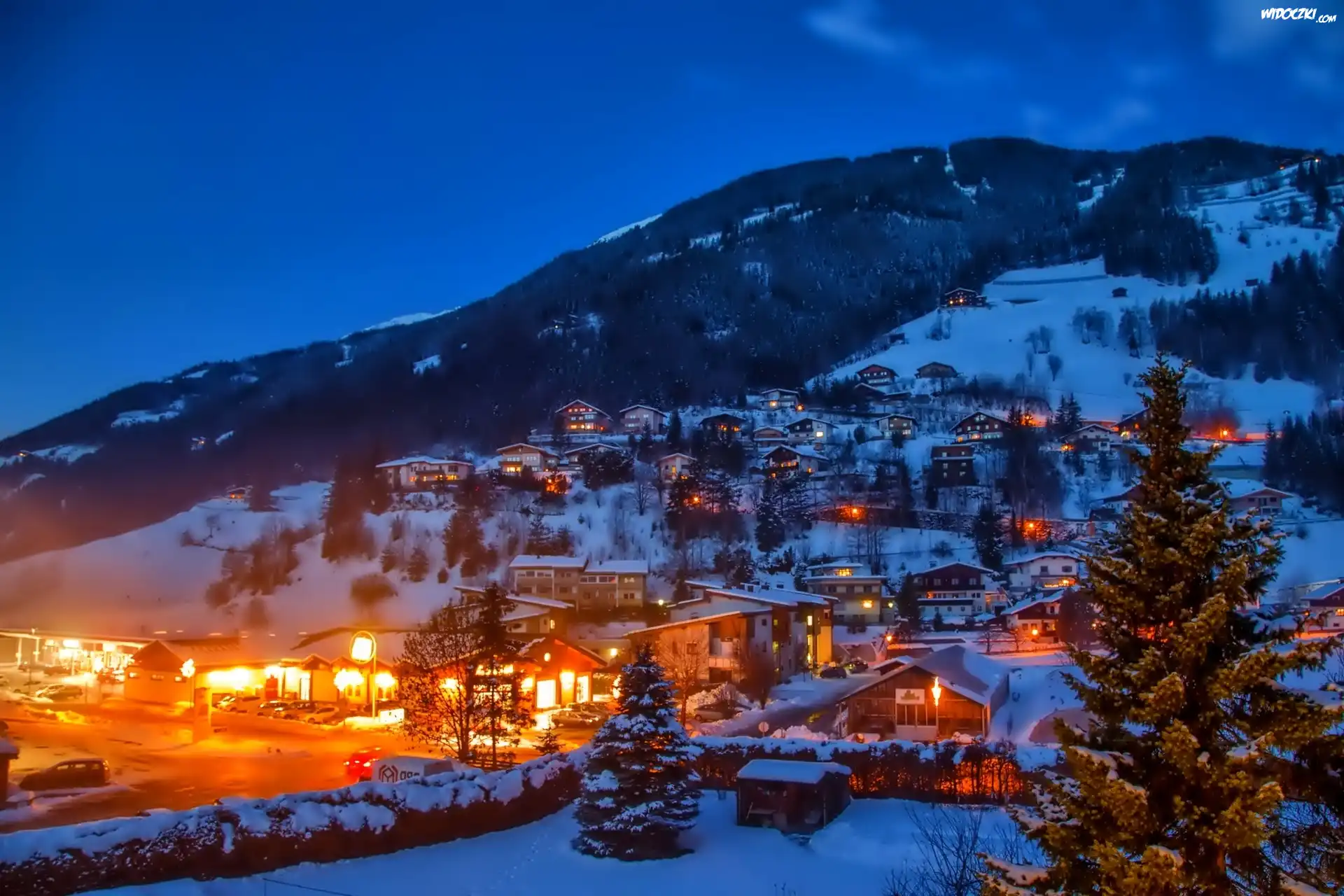 Zima, Góry, Miasto nocą