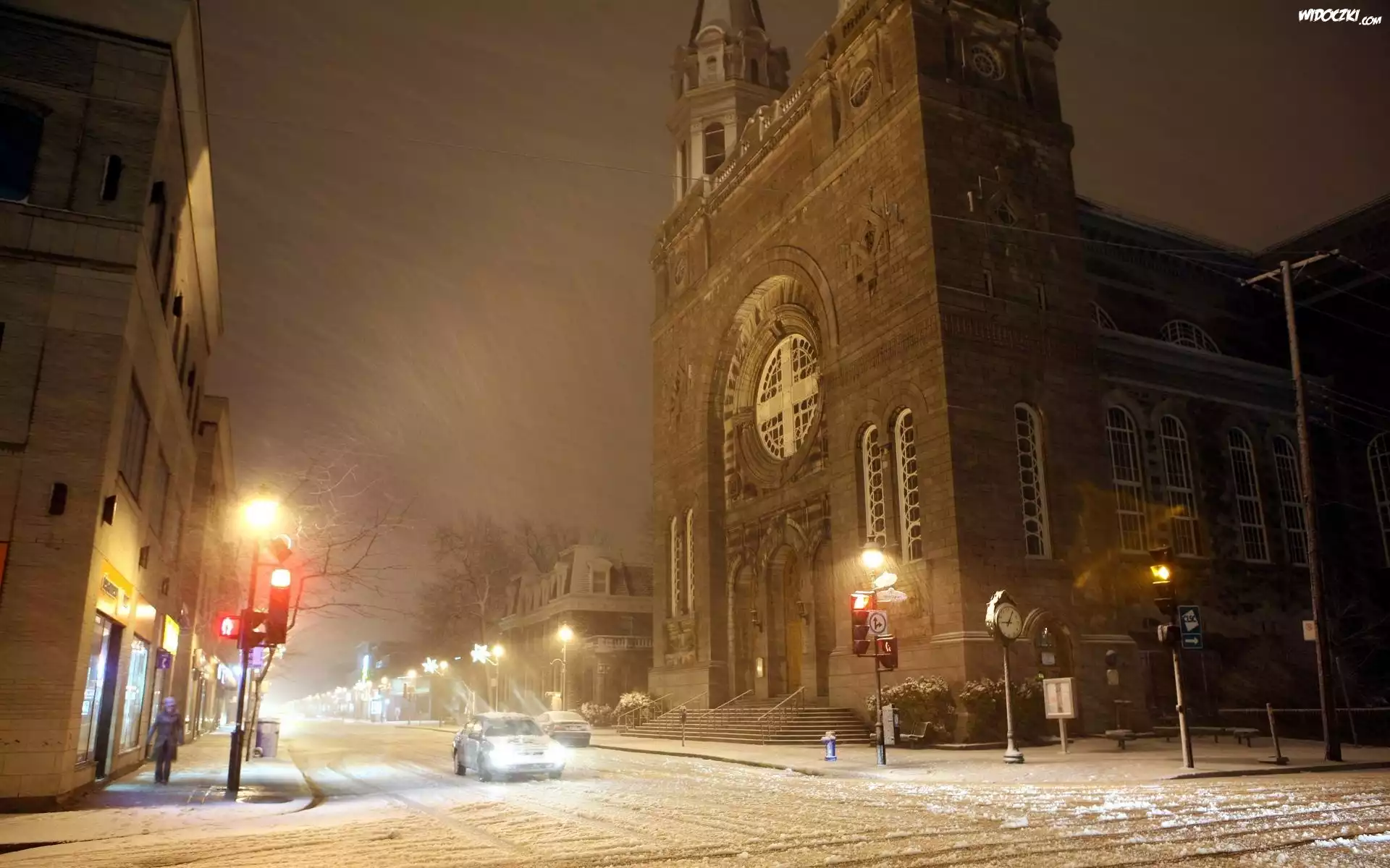 Zdjęcia, Zima, Śnieg, Kościół, Miasto, Noc