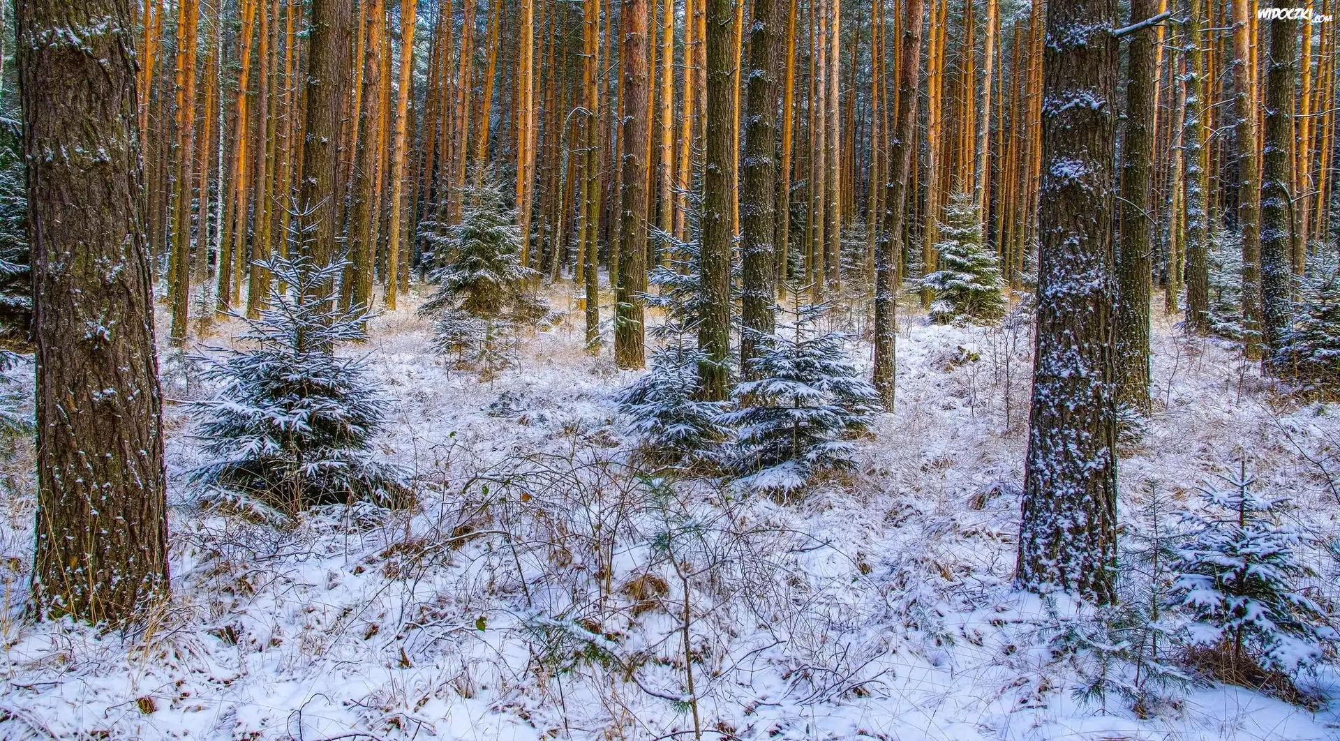 Zdjęcia, Zima, Sosnowy, Las, Młode, Świerki