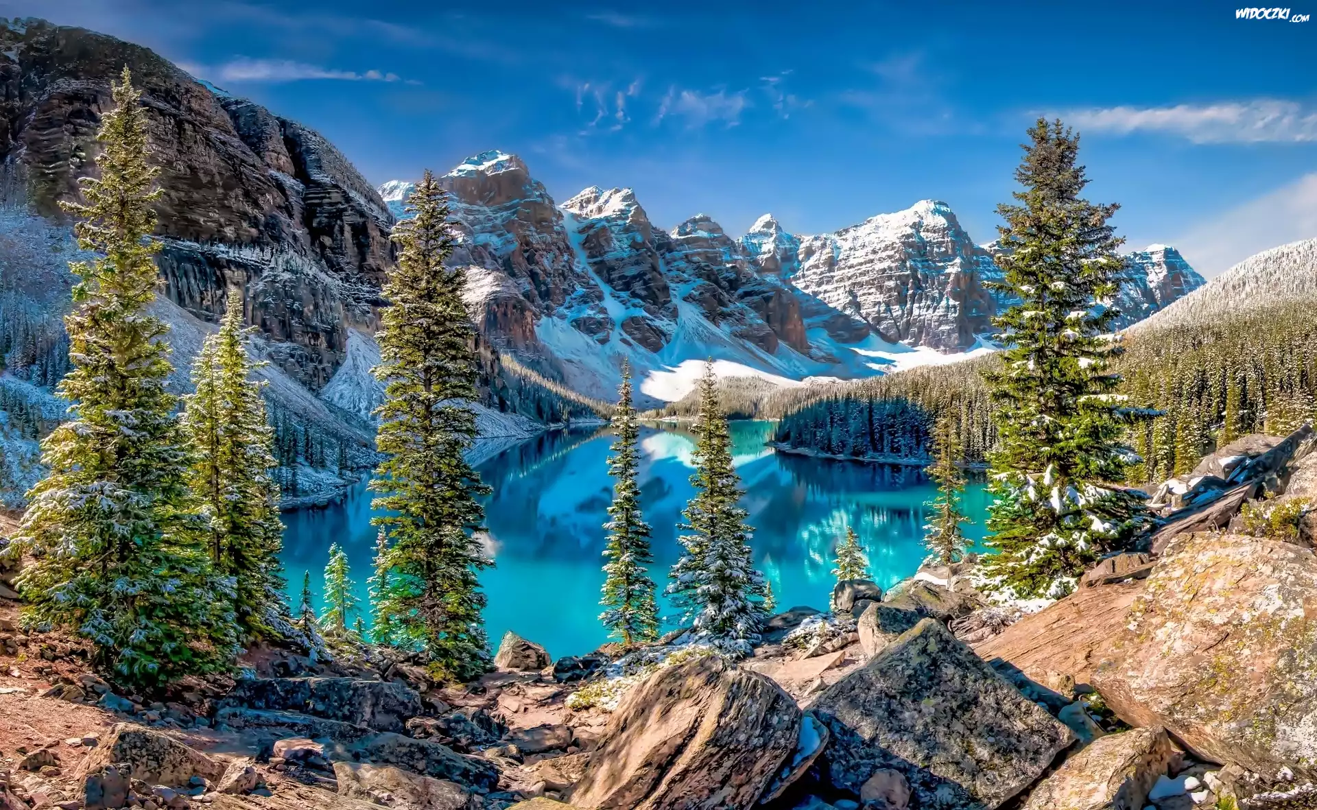Zdjęcia, Zima, Góry, Las, Jezioro, Morenowe, Kanada