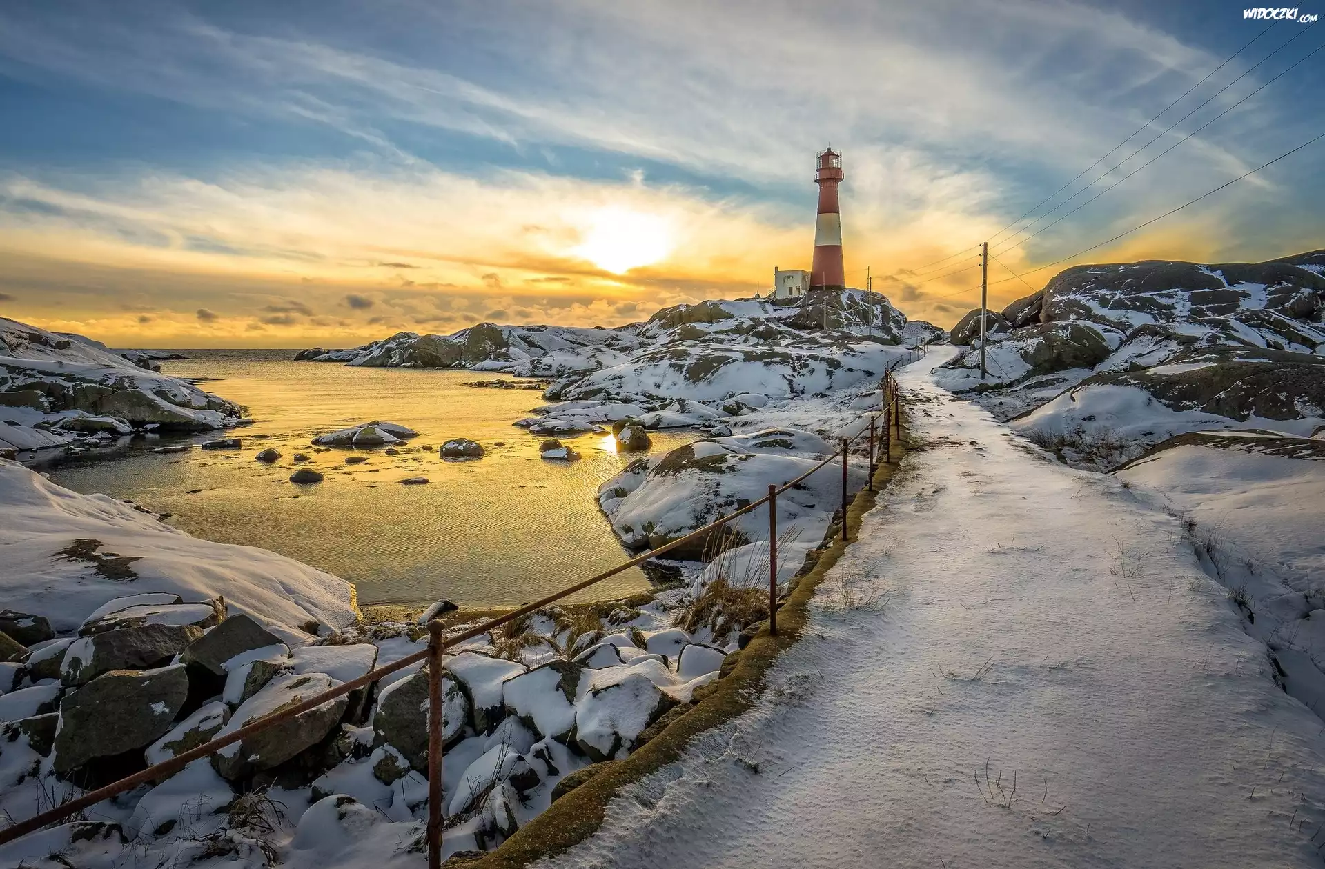 Zdjęcia, Morze, Zima, Kamienie, Latarnia, Morska, Wschód, Słońca