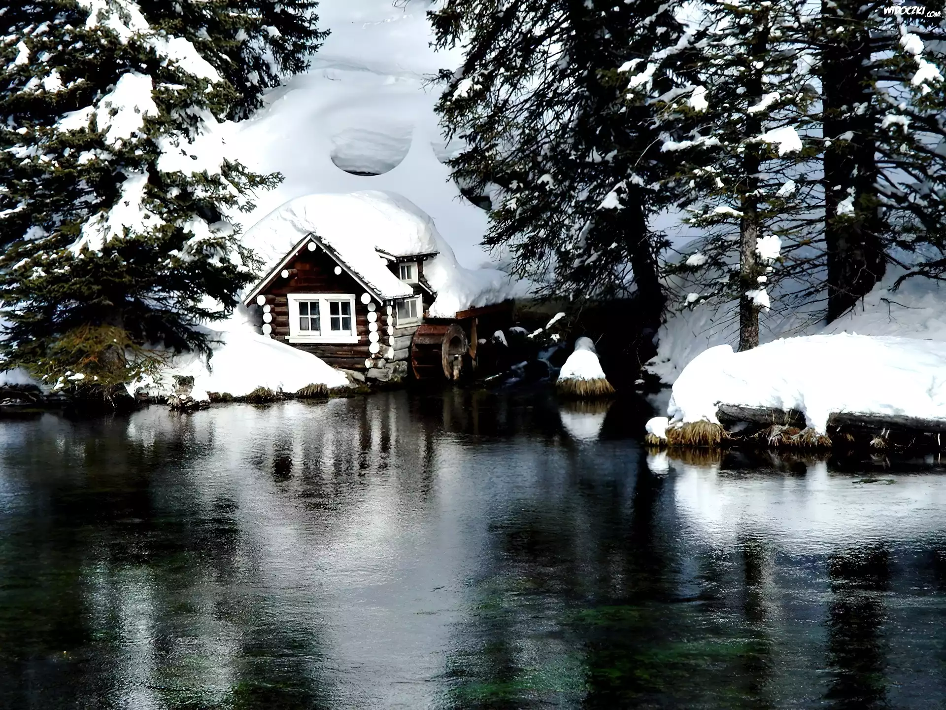 Zdjęcia, Zima, Młyn, Wodny, Nad, Rzeką