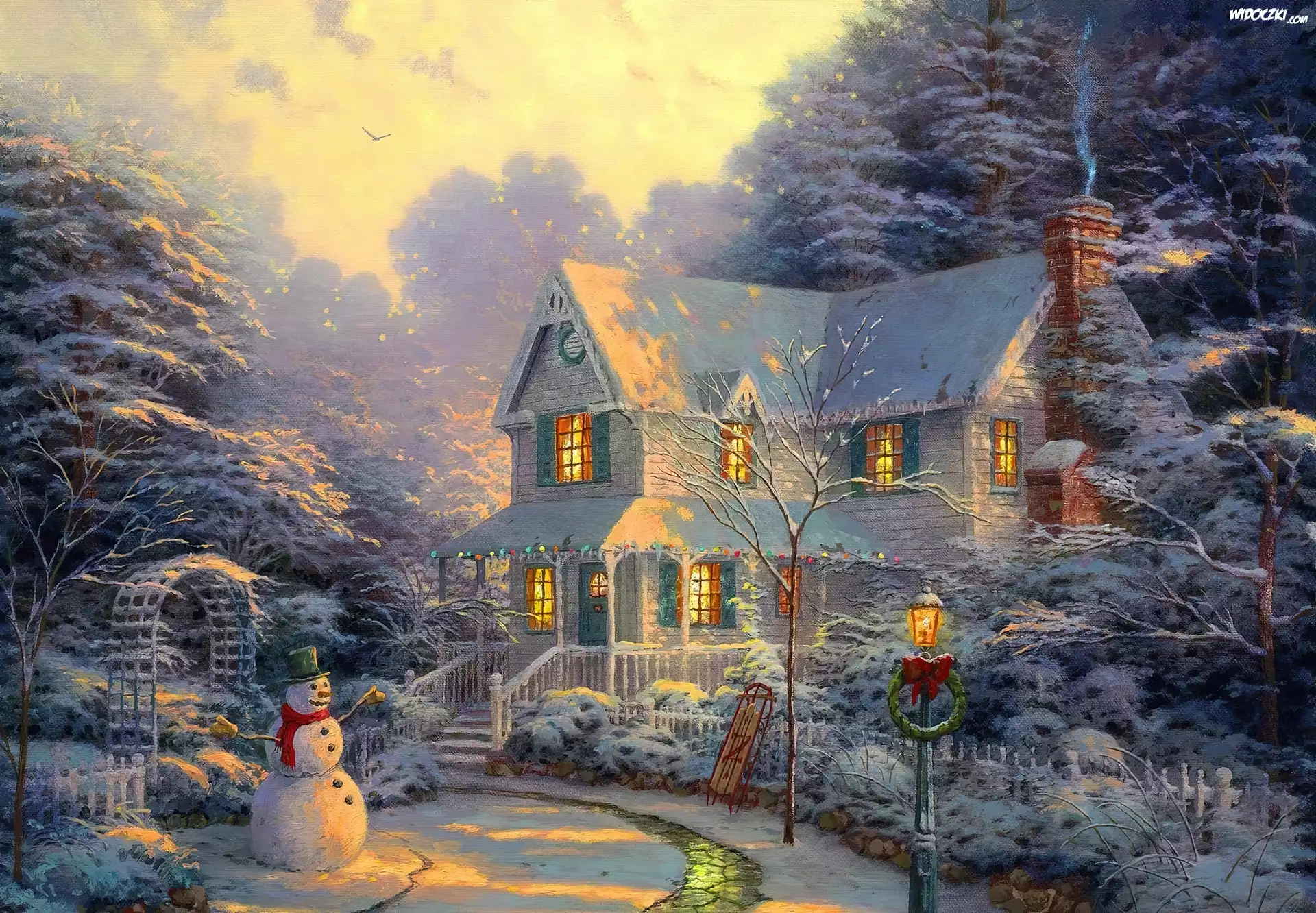 Zdjęcia, Zima, Bałwan, Dom, Boże, Narodzenie, Obraz