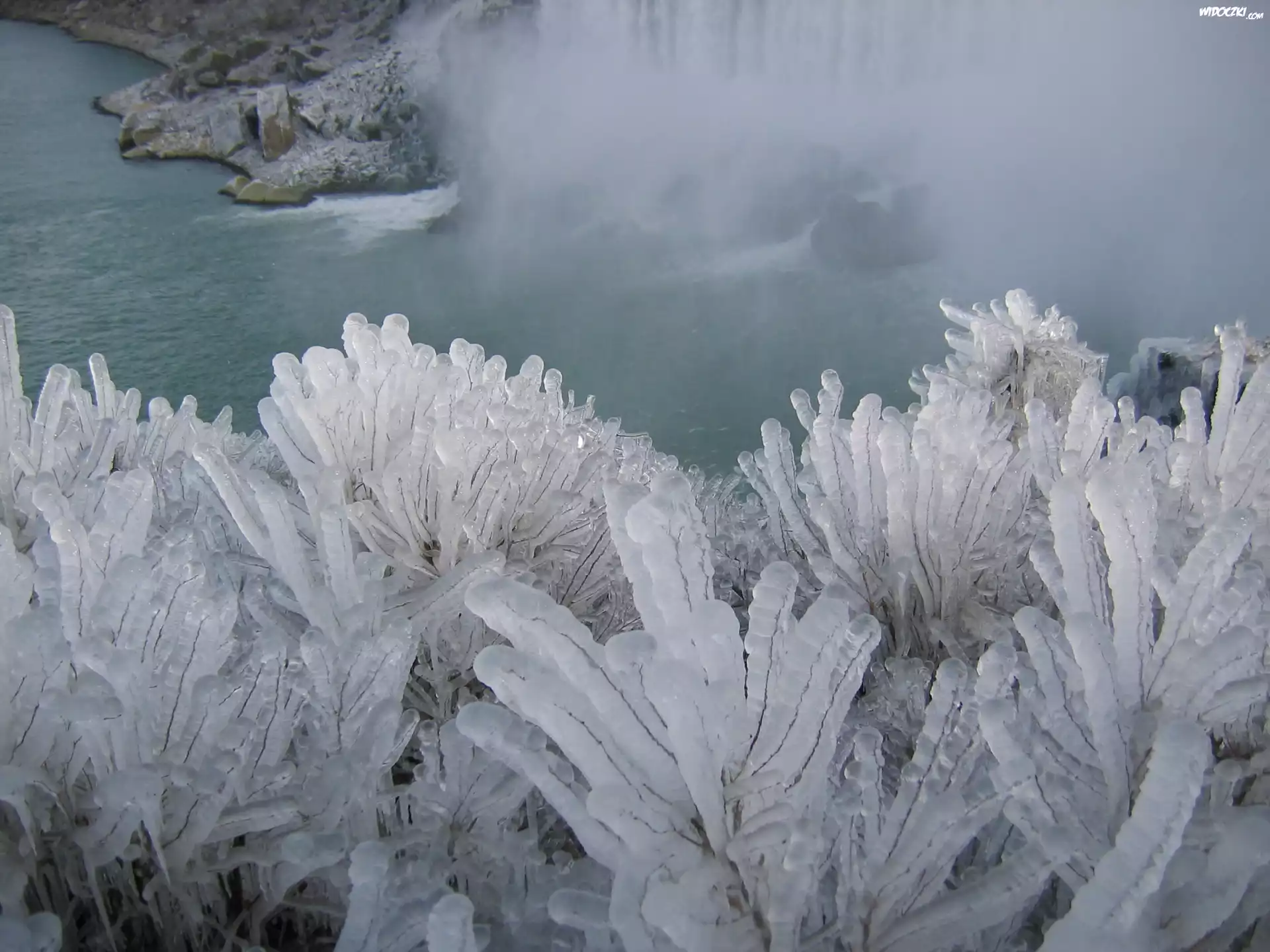 Zdjęcia, Zima, Oblodzone, Krzaczki, Niagara, Kanada