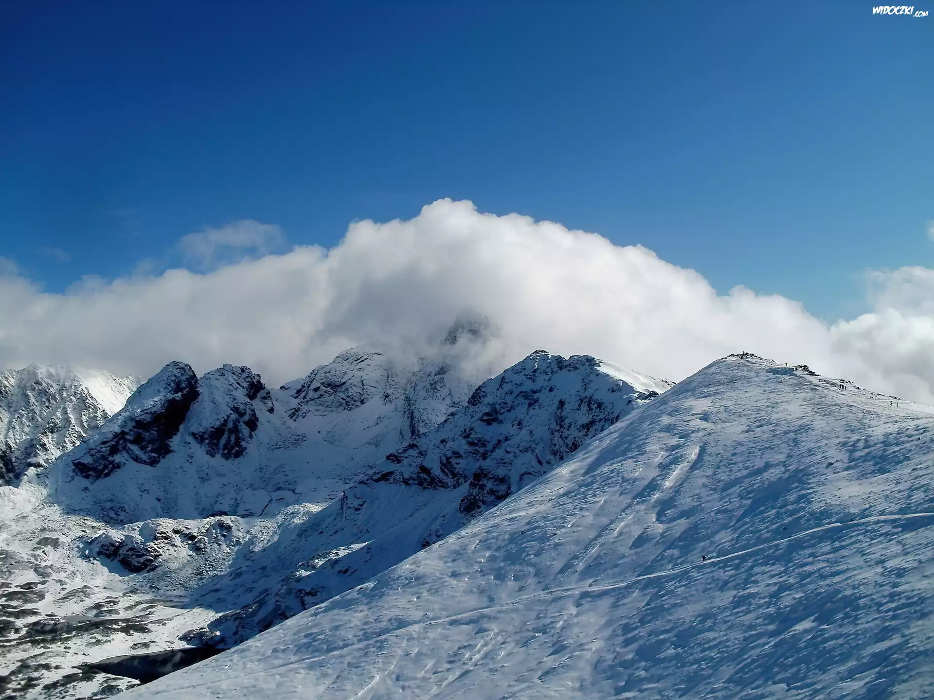 Zdjęcia, Zima, Góry, Niebo, Chmury