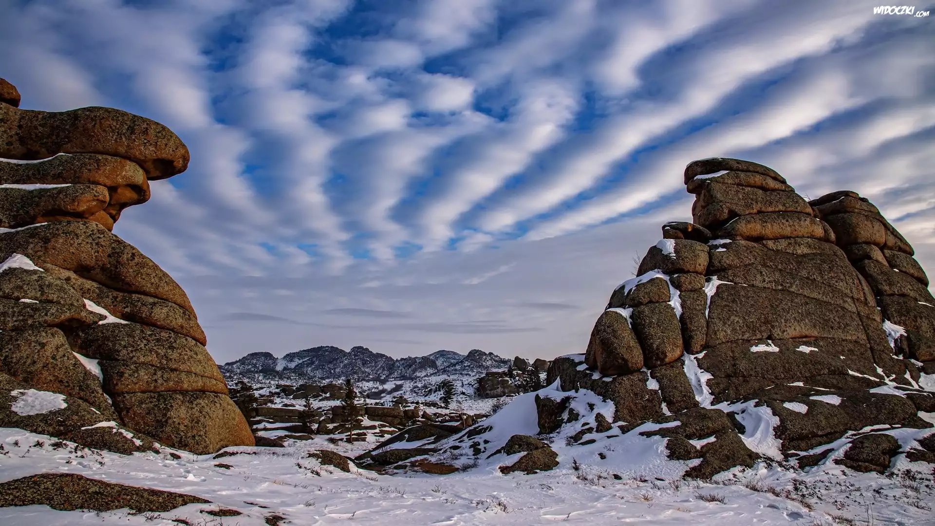 Zdjęcia, Zima, Skały, Śnieg, Niebo, Chmura