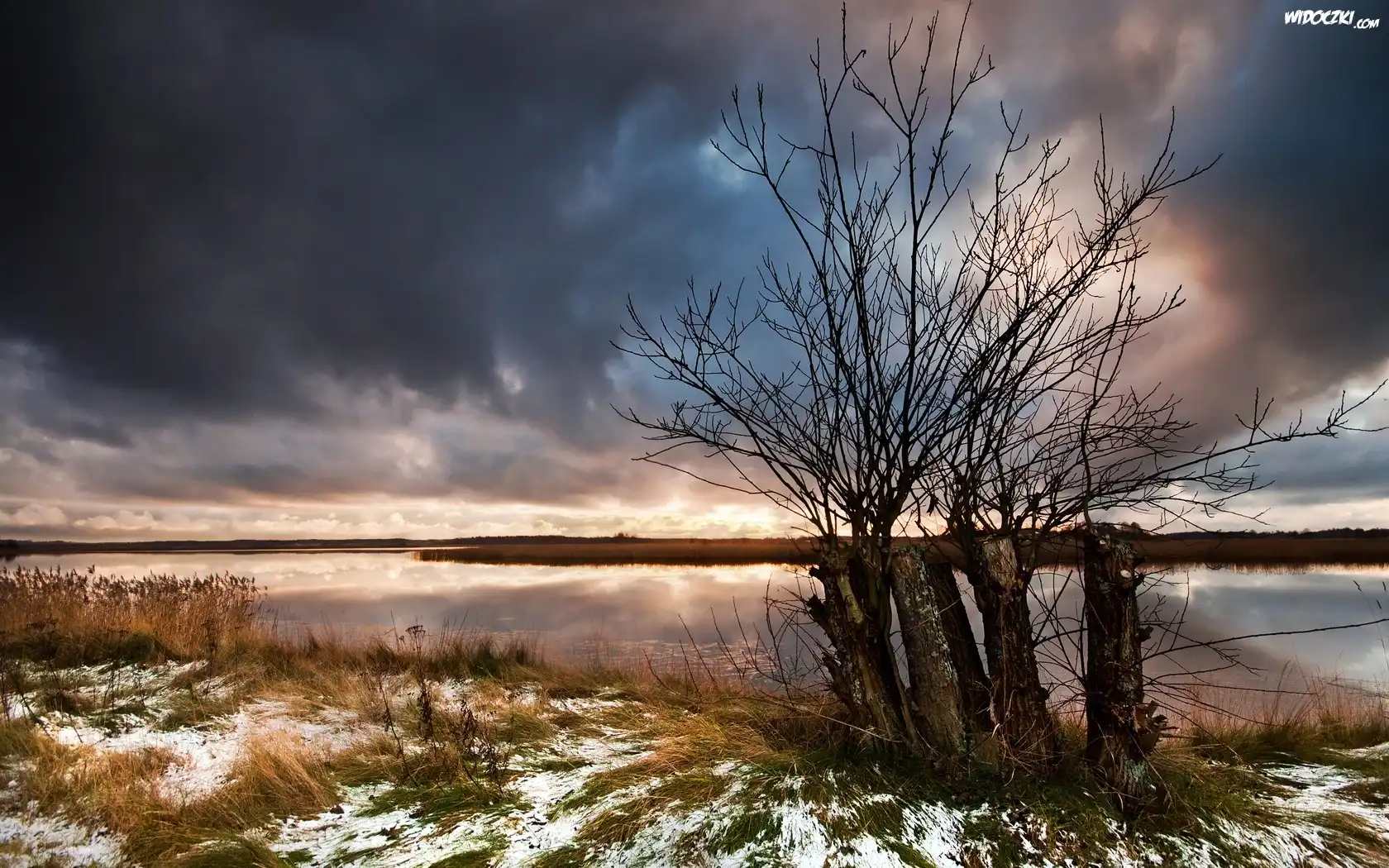 Zdjęcia, Zima, Pochmurne, Niebo, Rzeka