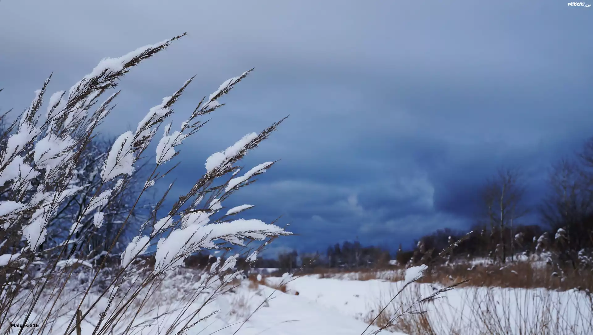 Zdjęcia, Zima, Śnieg, Rośliny, Niebo, Chmury