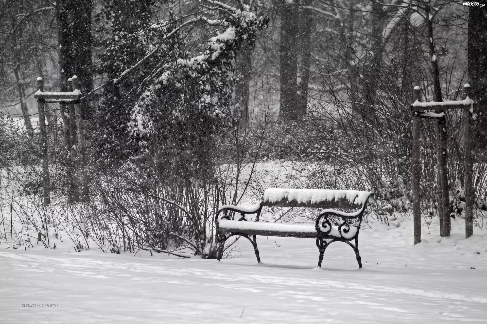 Zdjęcia, Zima, Ławka, Śnieg, Park