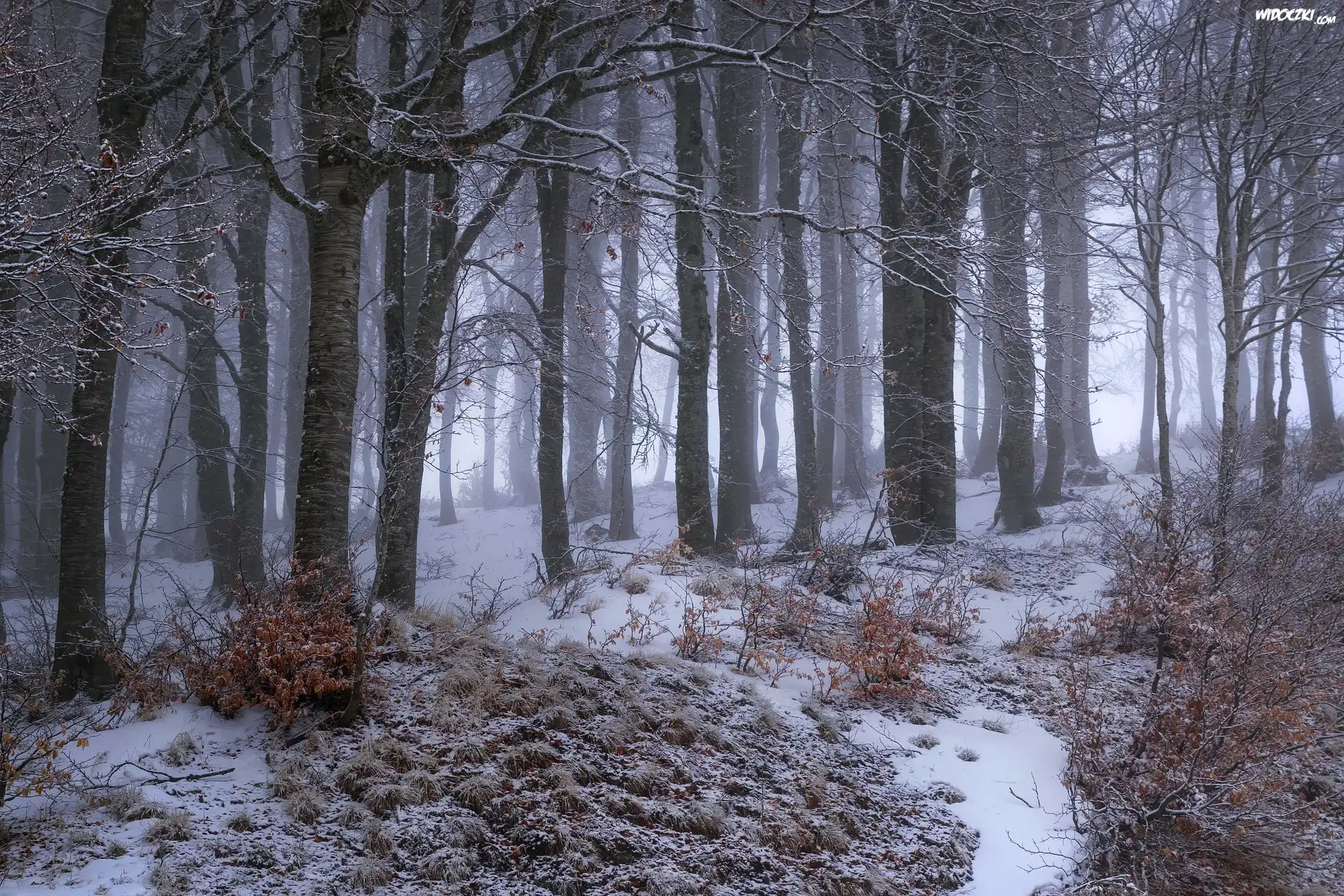 Zdjęcia, Zima, Las, Drzewa, Śnieg, Mgła