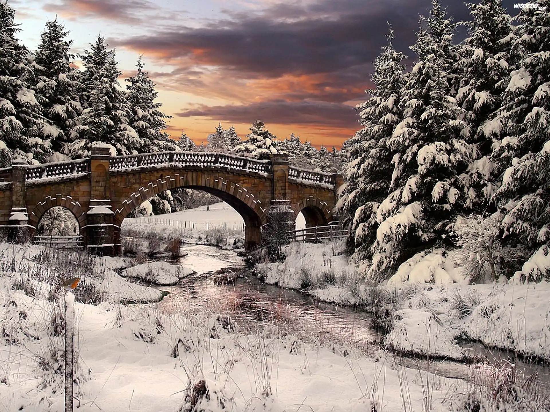 Zdjęcia, Zima, Drzewa, Śnieg, Most