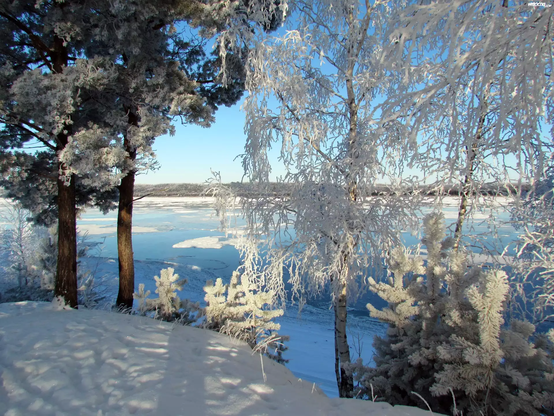 Zdjęcia, Zima, Rzeka, Drzewa, Śnieg, Rosja