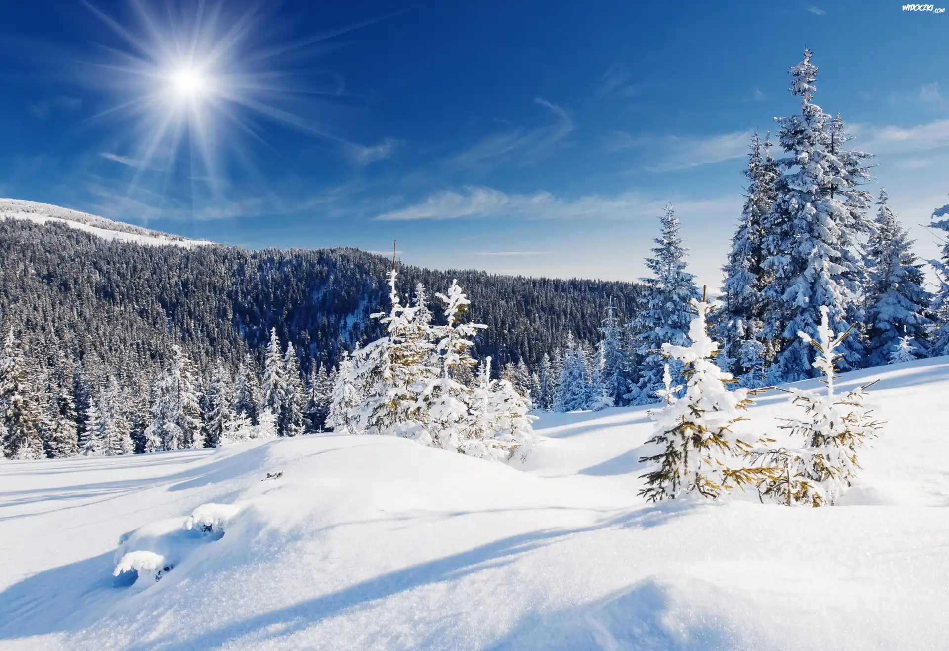 Zdjęcia, Zima, Las, Śnieg, Drzewa
