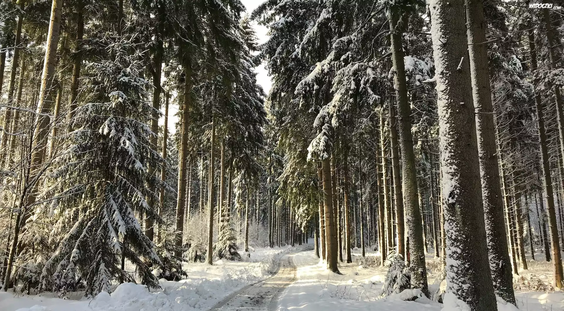 Zima, Iglasty, Las, Åšnieg, Droga
