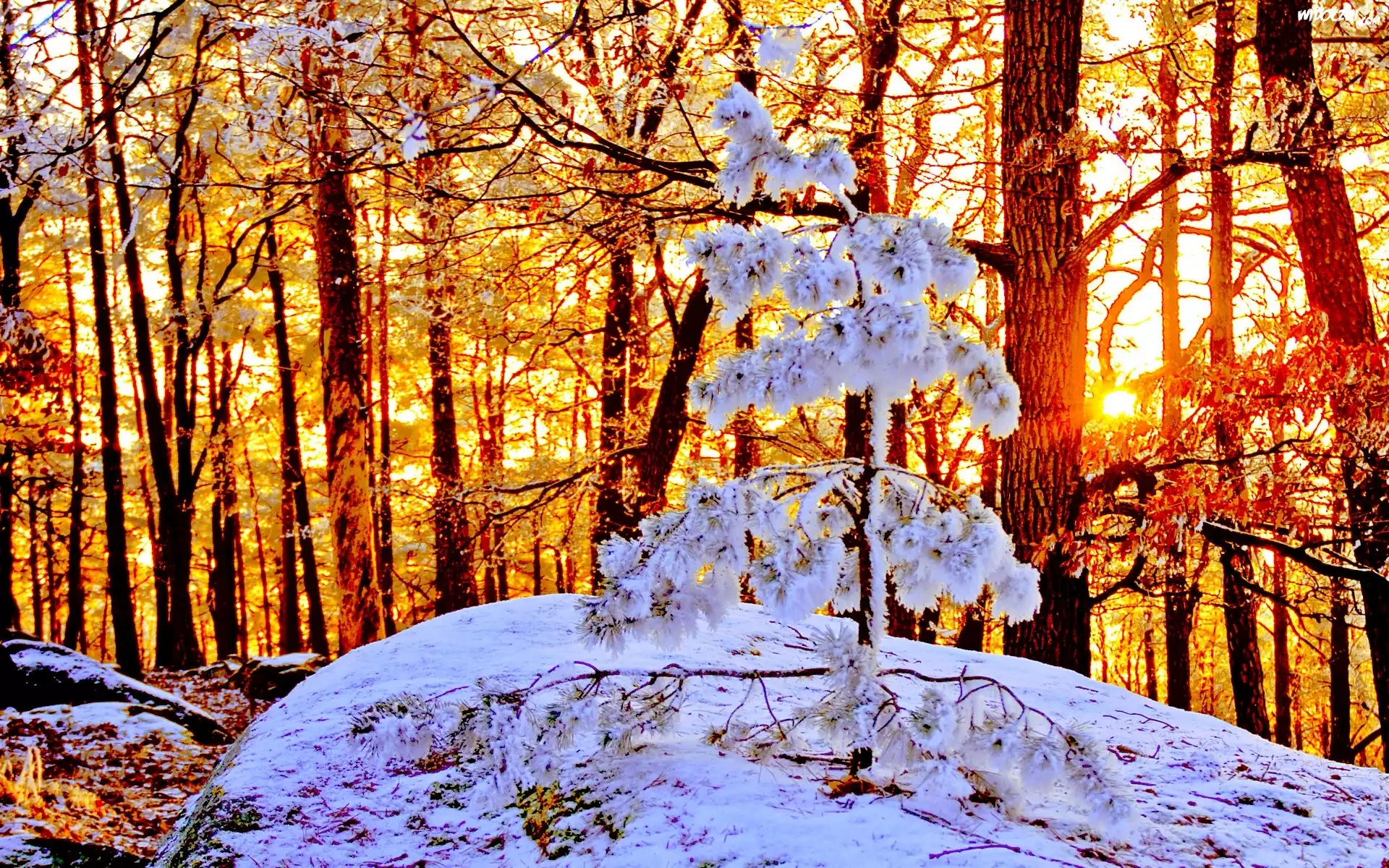 Zima, Las, Śnieg, Słońce
