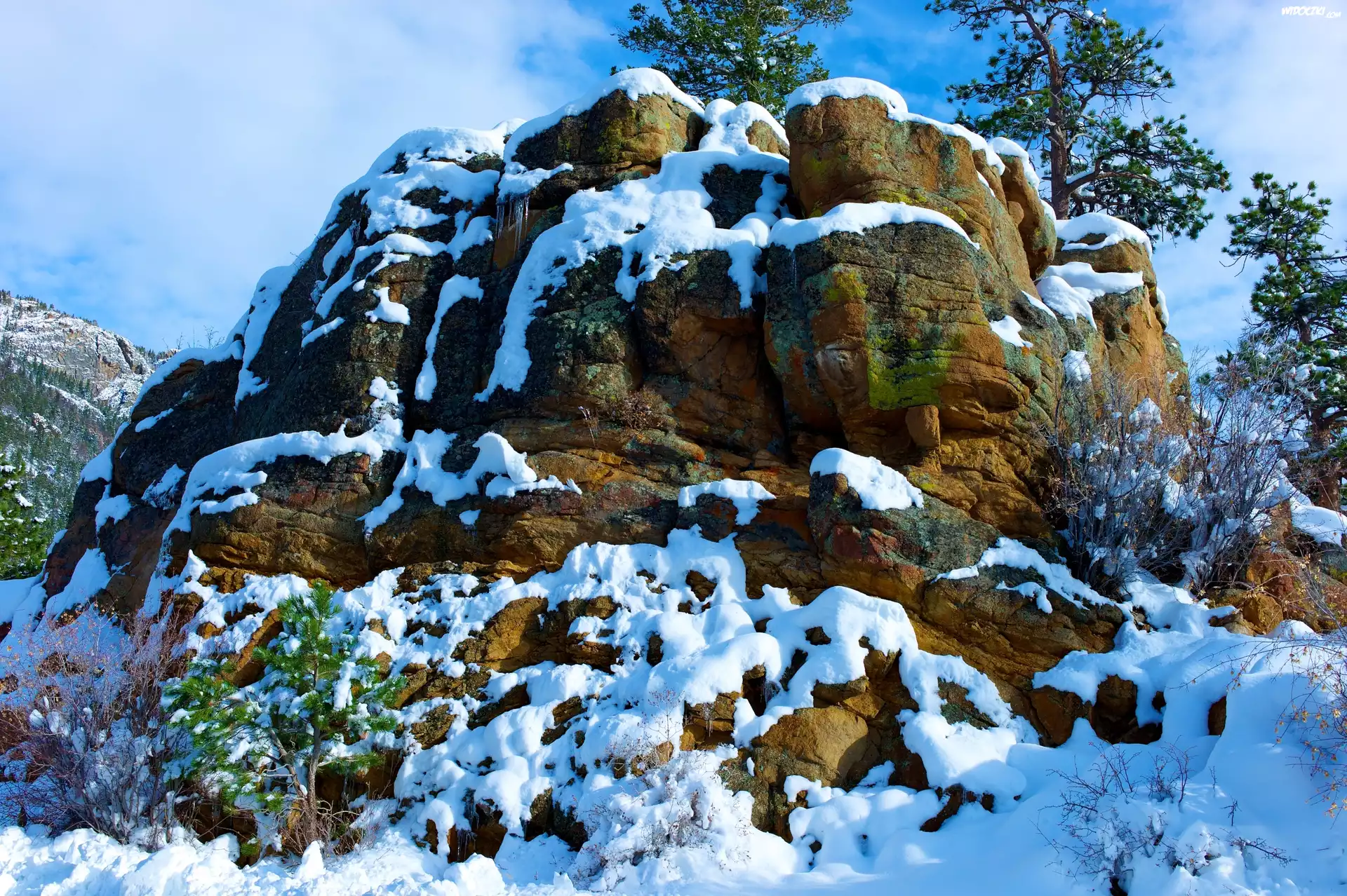 Zdjęcia, Zima, Skały, Śnieg, Drzewa