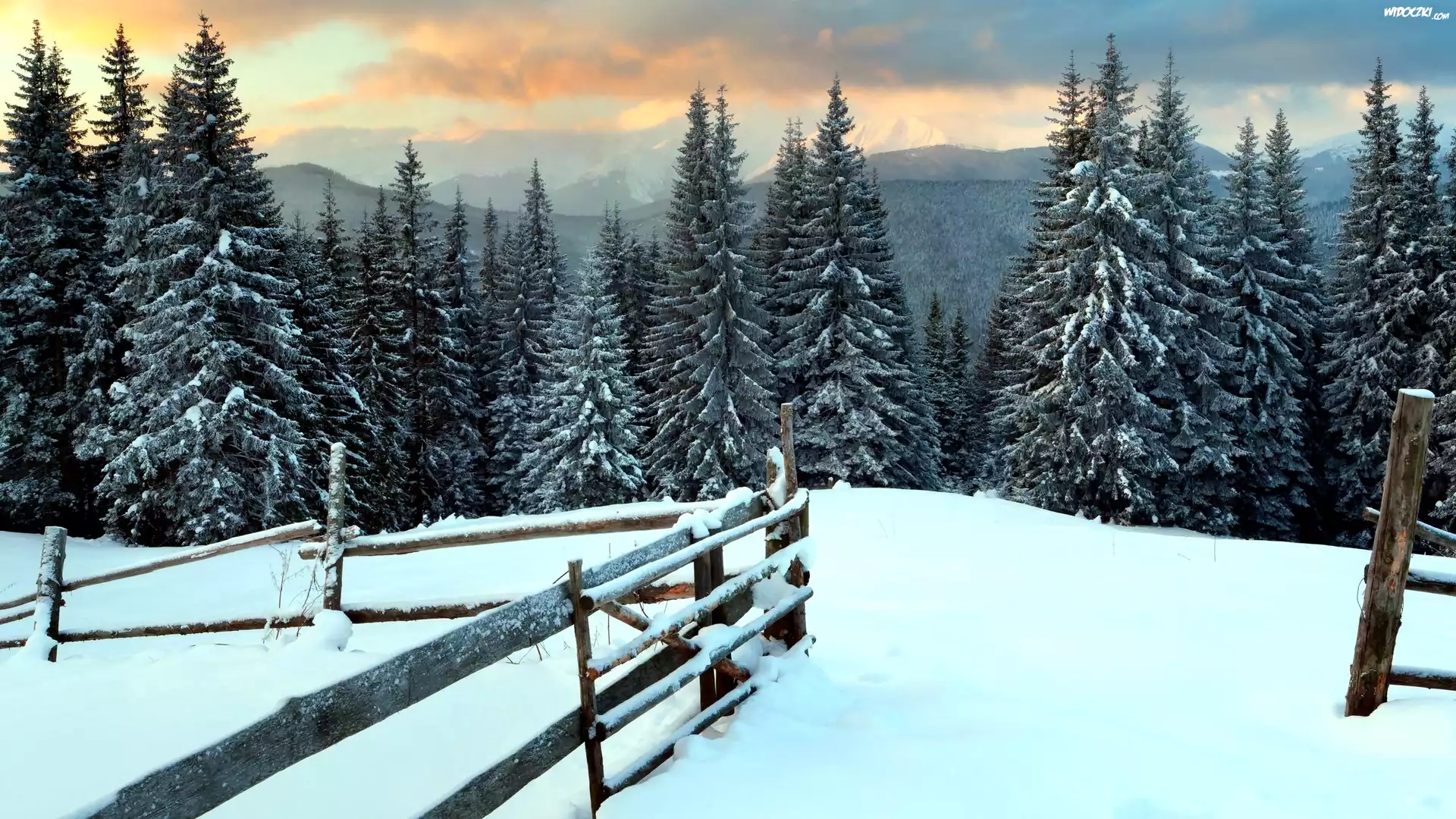 Zdjęcia, Zima, Las, Wzgórze, Śnieg, Ogrodzenie