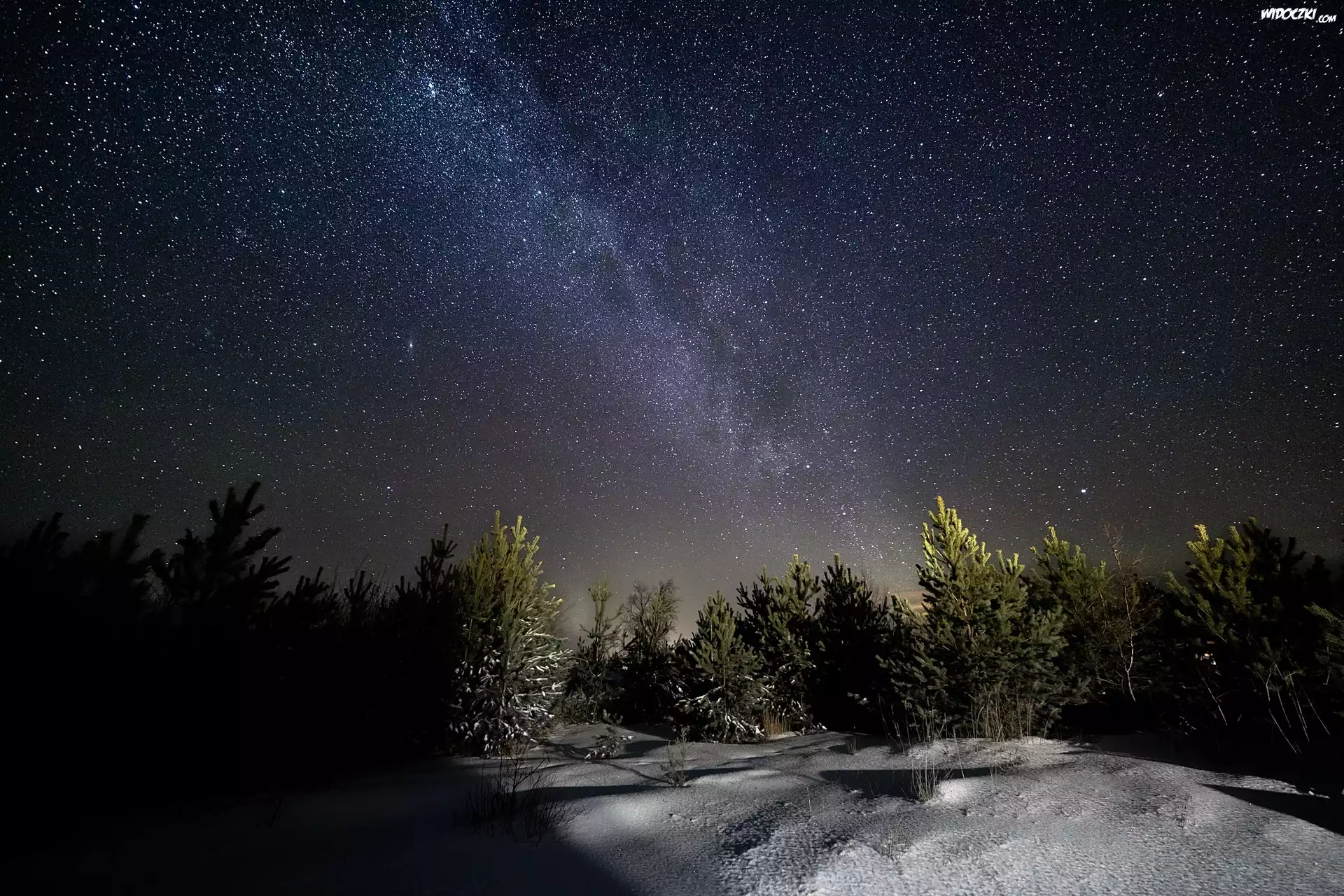Zdjęcia, Zima, Las, Noc, Gwiazdy
