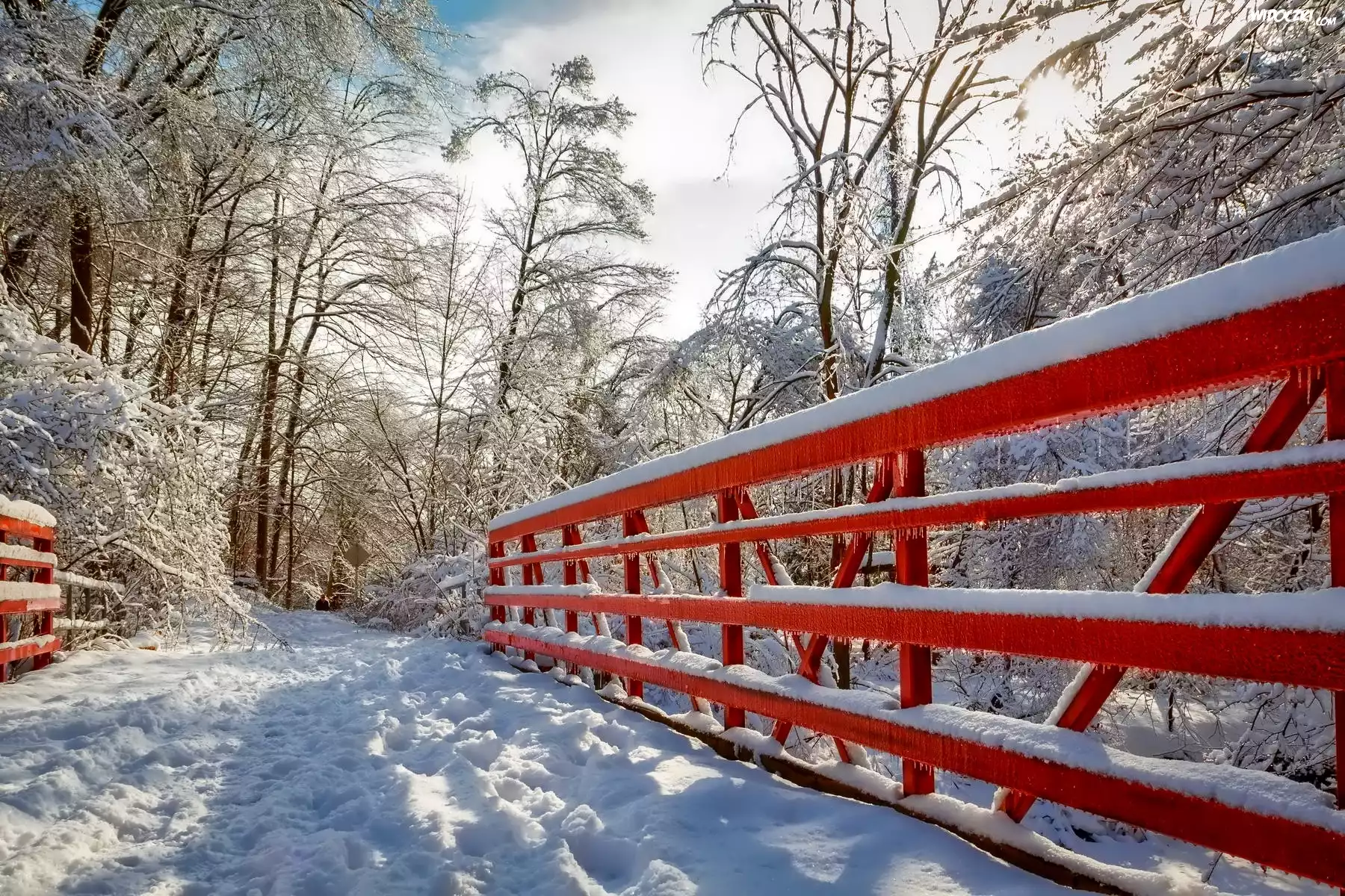 Zdjęcia, Zima, Most, Oblodzona, Poręcz